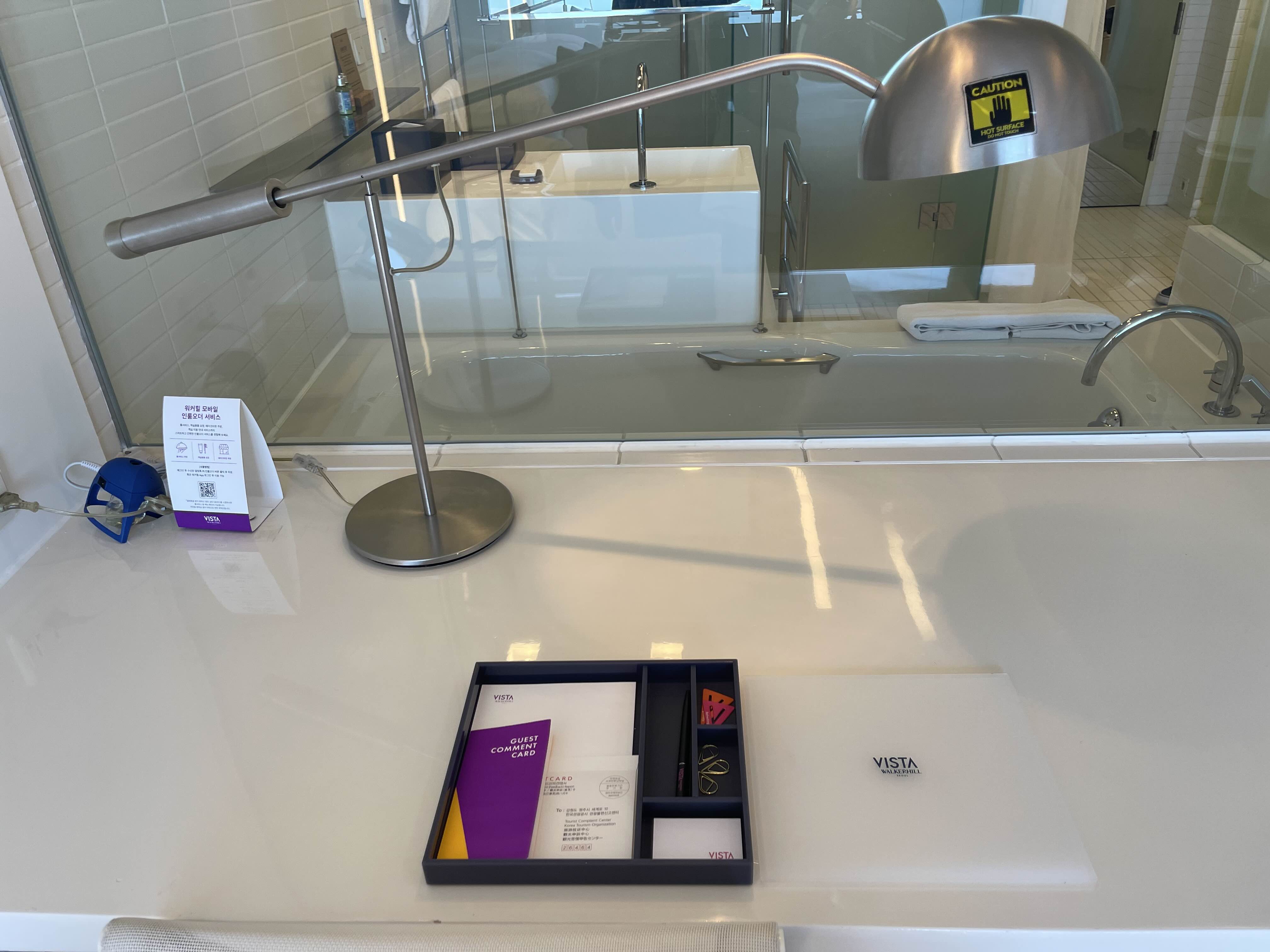 욕조 옆은 투명창으로 되어있어서 반신욕을 즐기면서 티비를 볼수도있겠어요~!