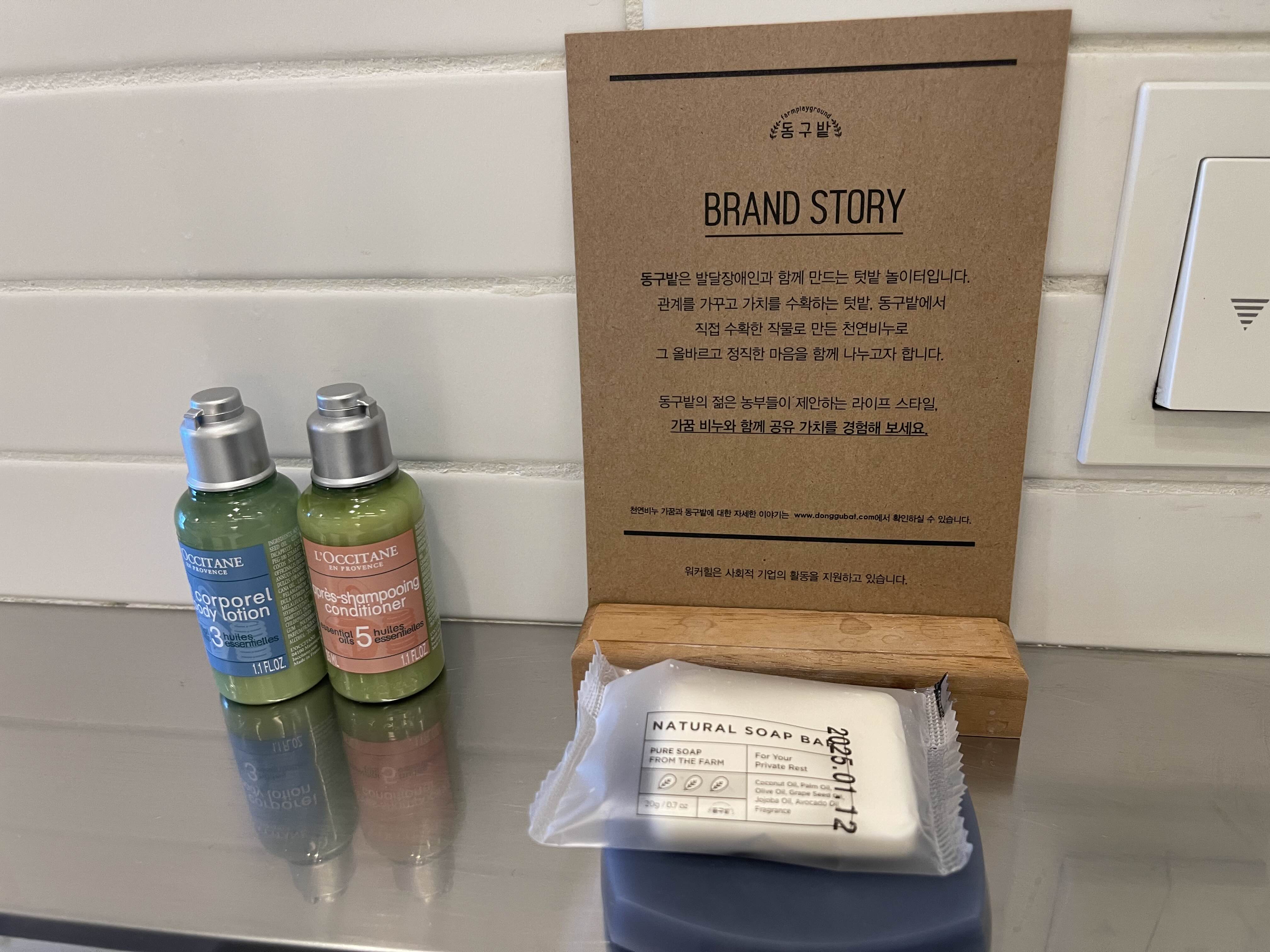 걱정 말아요~ 블라인드로 가릴수가있답니다(꺄륵꺄륵) 세면대에는 천연비누와, 록시땅 바디로션, 컨디셔너가 있어요. 멋드러진 상자속에는 칫솔,치약, 빗, 손톱파일, 면봉, 화장솜, 등등…이 준비되어있어요.