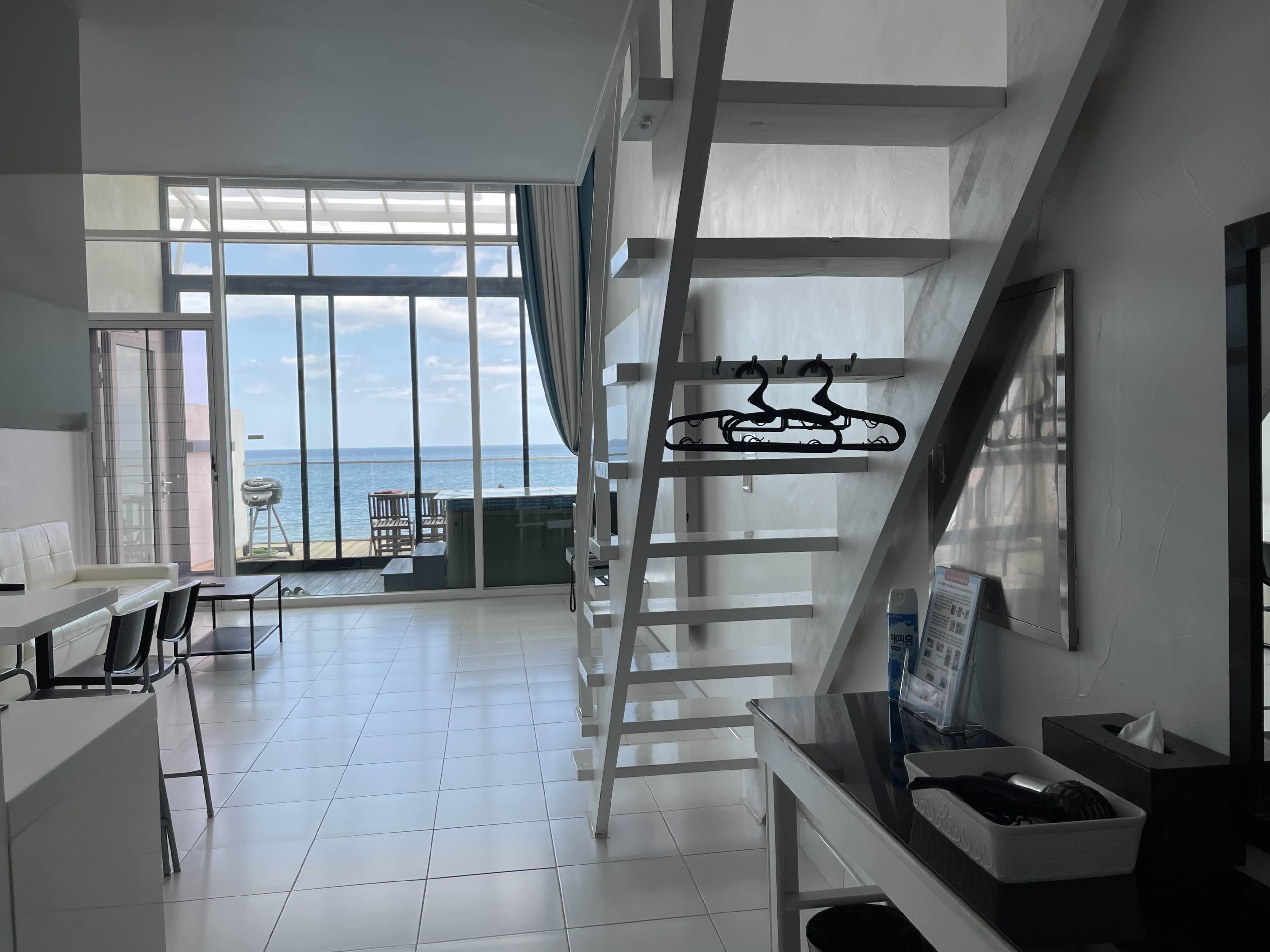 복층인만큼 천장이 높고 바다가 보이는. 속이 뻥뚫려버려요.
