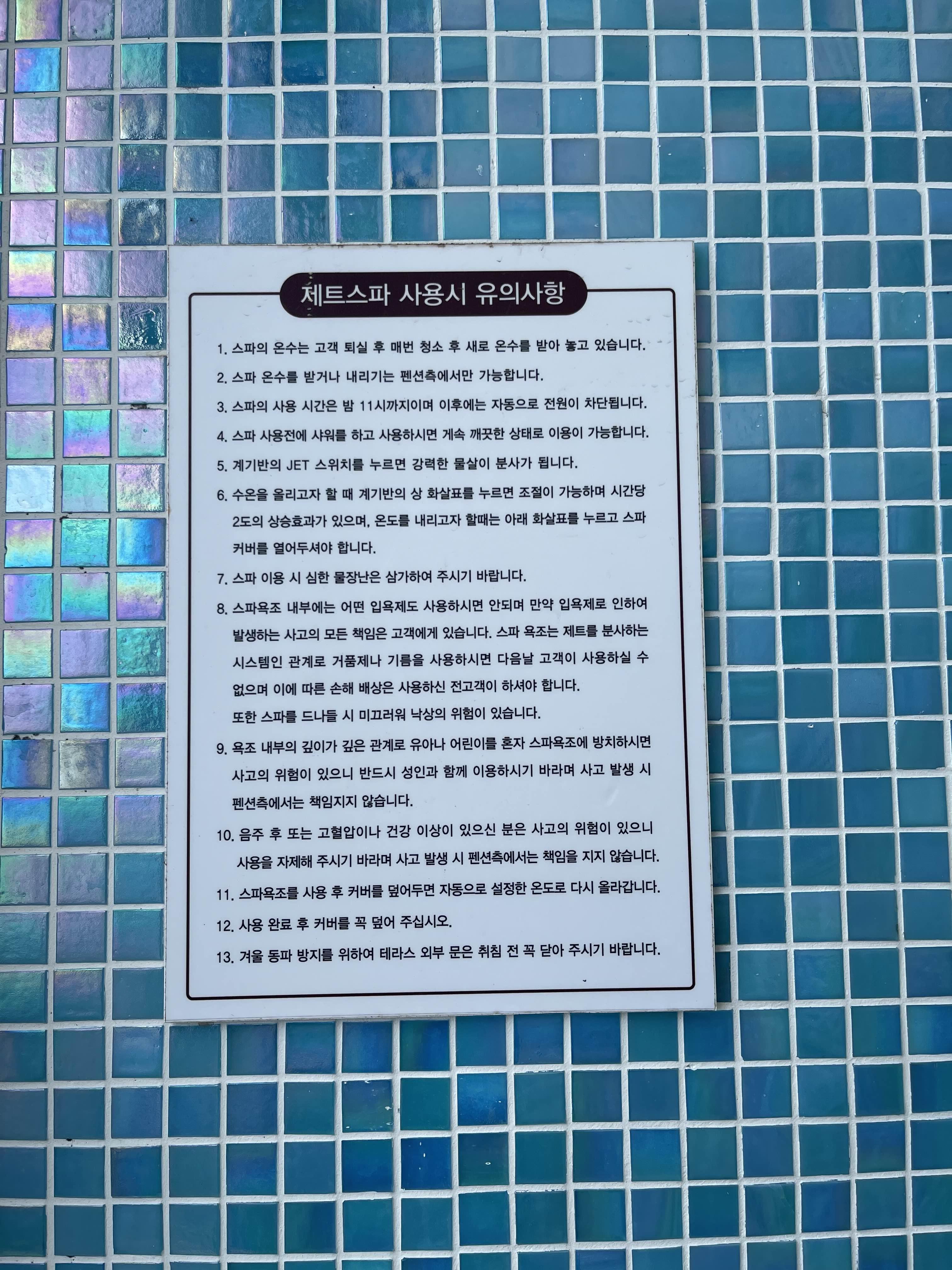 따뜻한 물이 가득 차있고, 온수가 식는 것을 막기 위해 위에 판때기가 올라가 있어요.