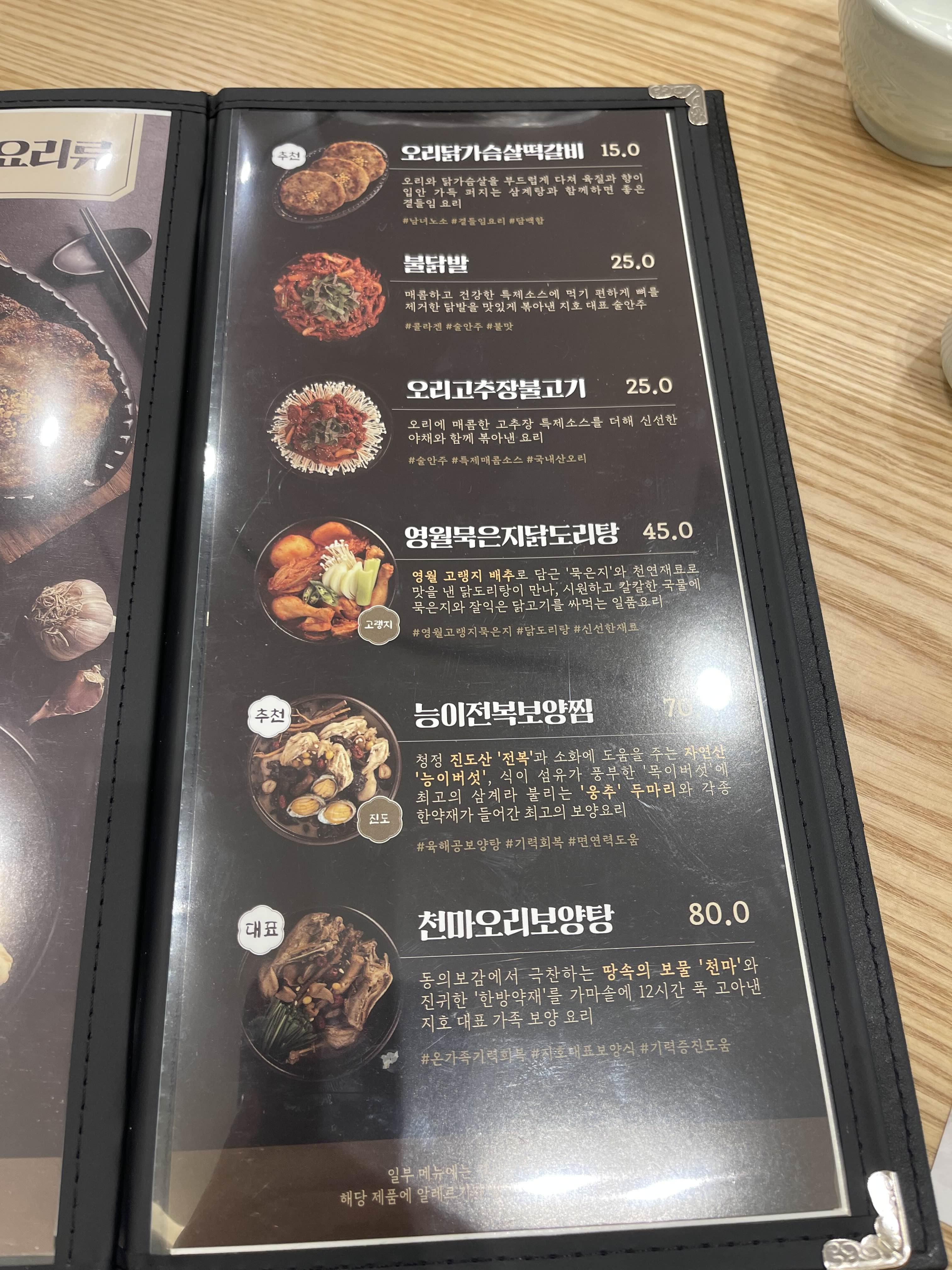 내 몸에 필요한 약재로 골라먹을 수 있는 메뉴.