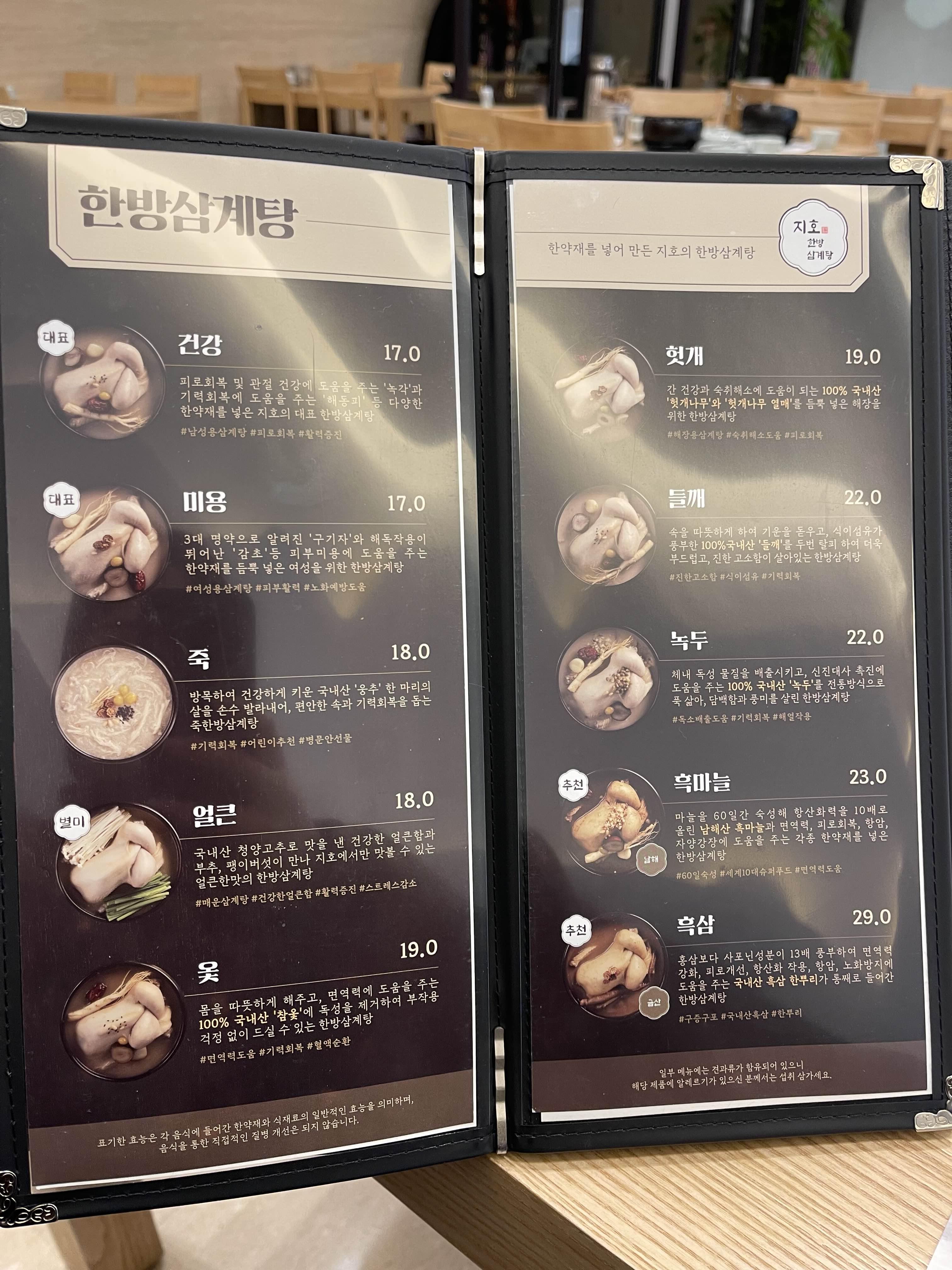 광면이는 대표메뉴인 건강삼계탕과 미용 삼계탕을 주문했어요.