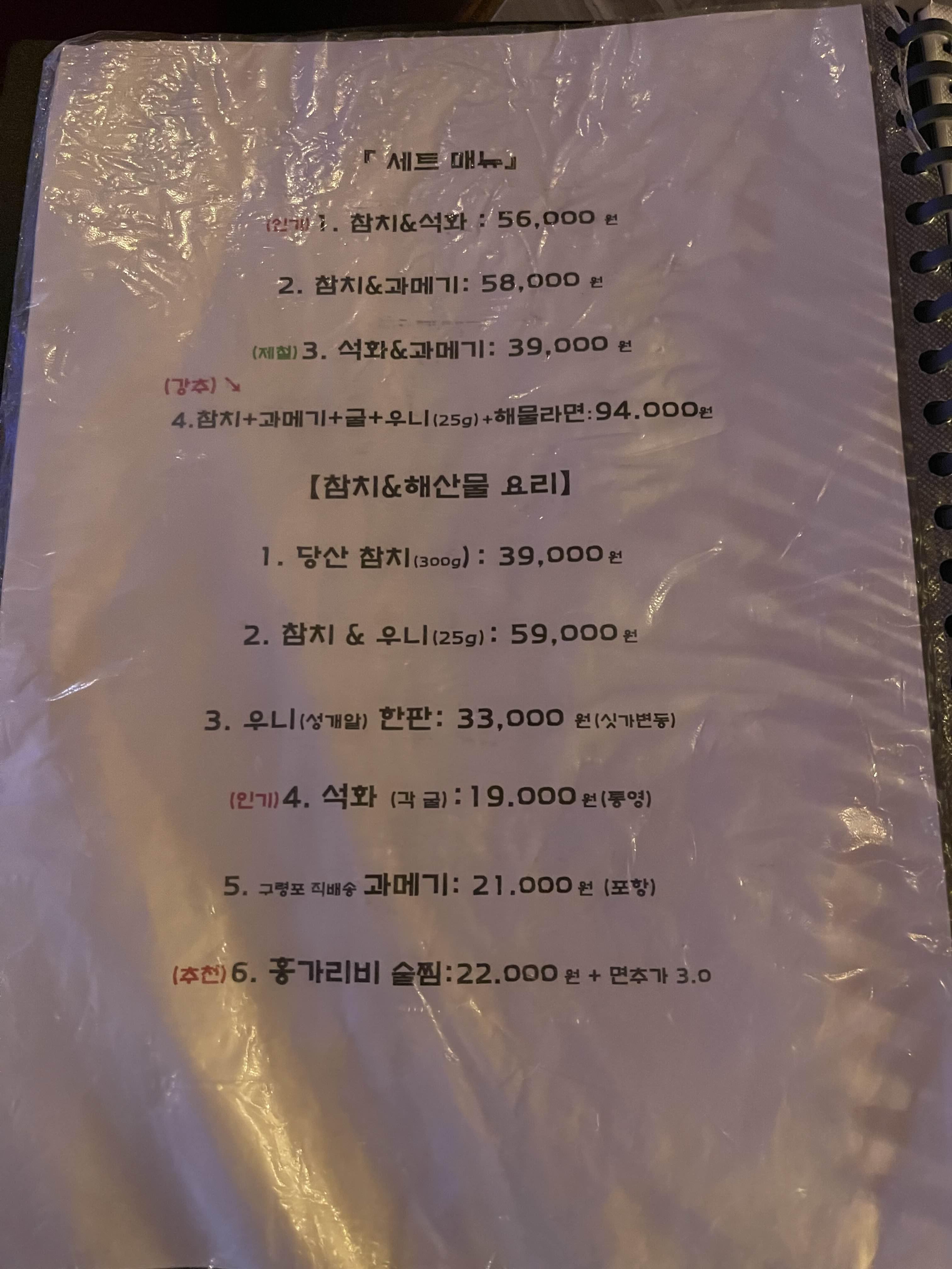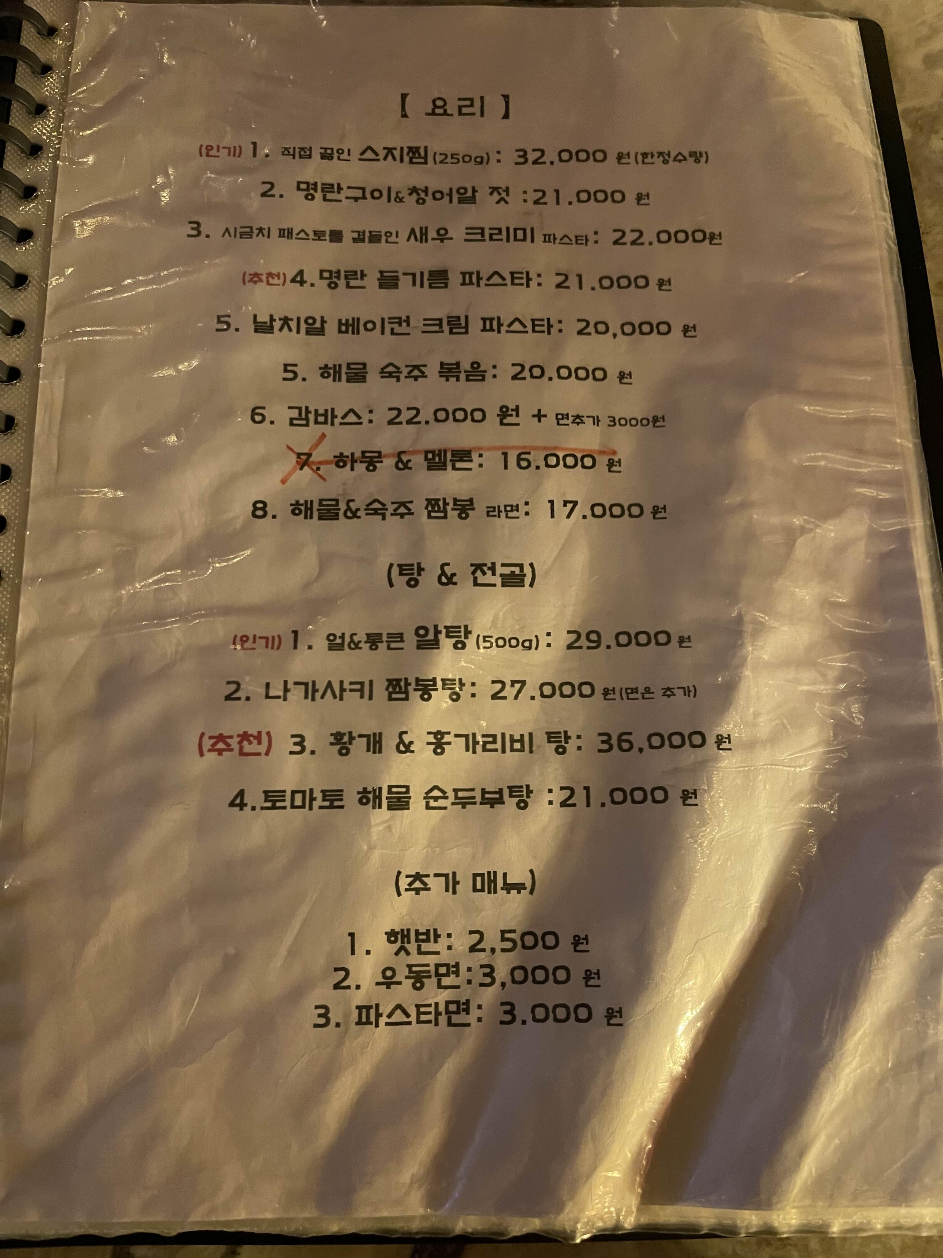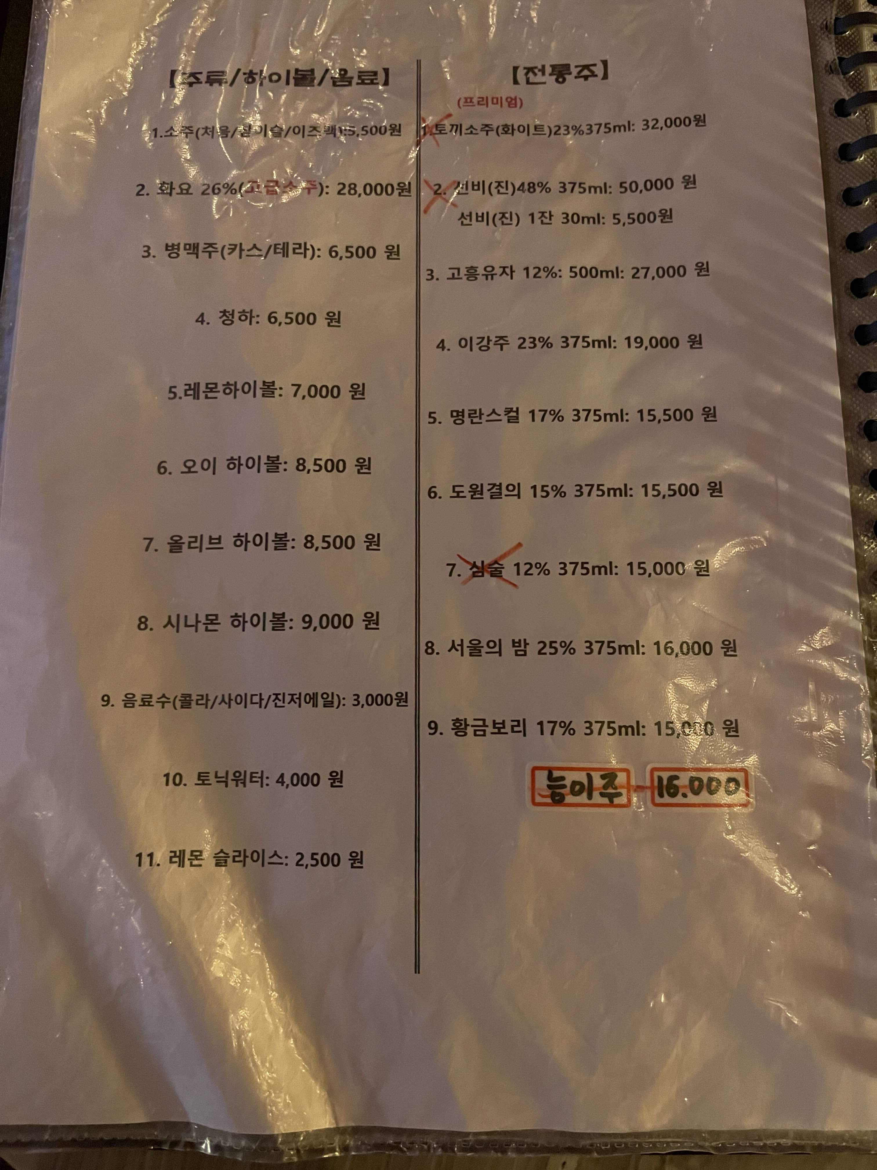 해산물메뉴, 파스타, 주류도 와인, 전통주, 하이볼 등 다양하네요.