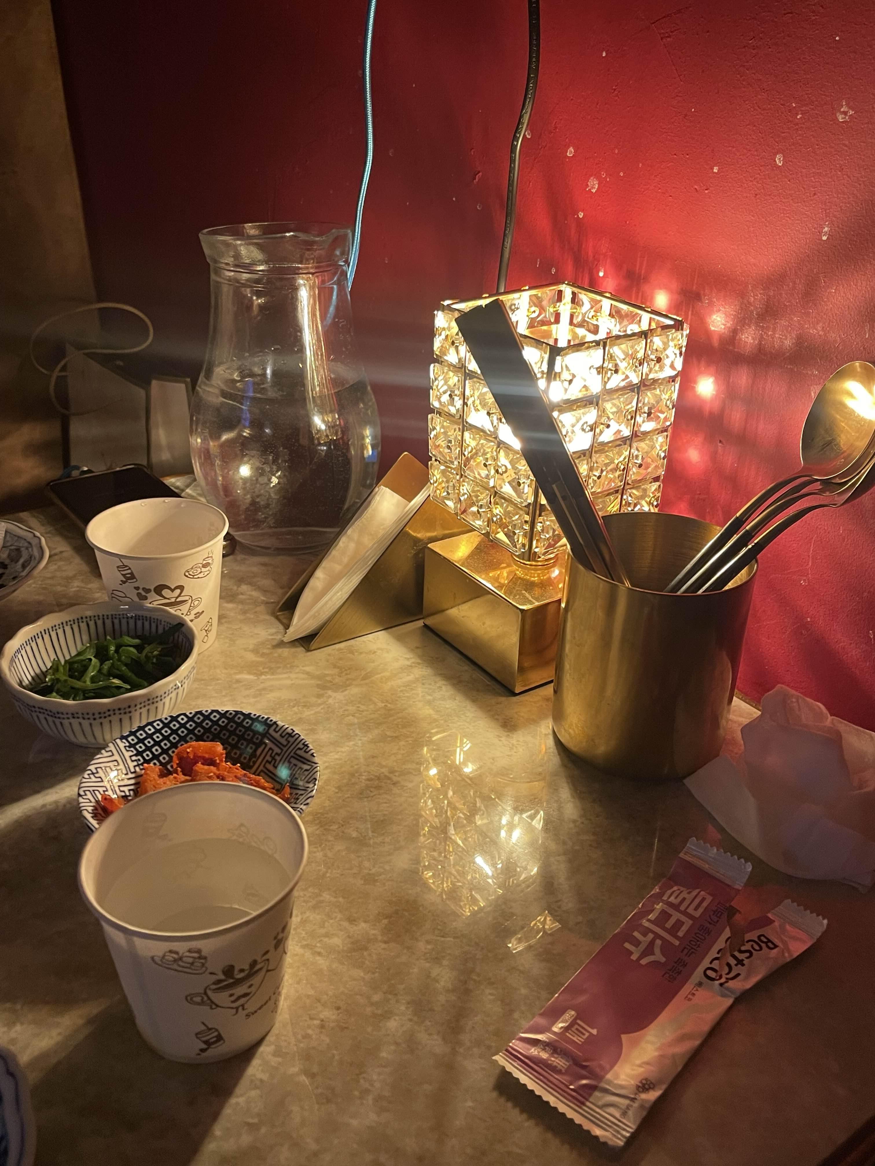 테이블마다 요로코롬 멋드러진 분위기를 만들어주는 조명이 있어요.