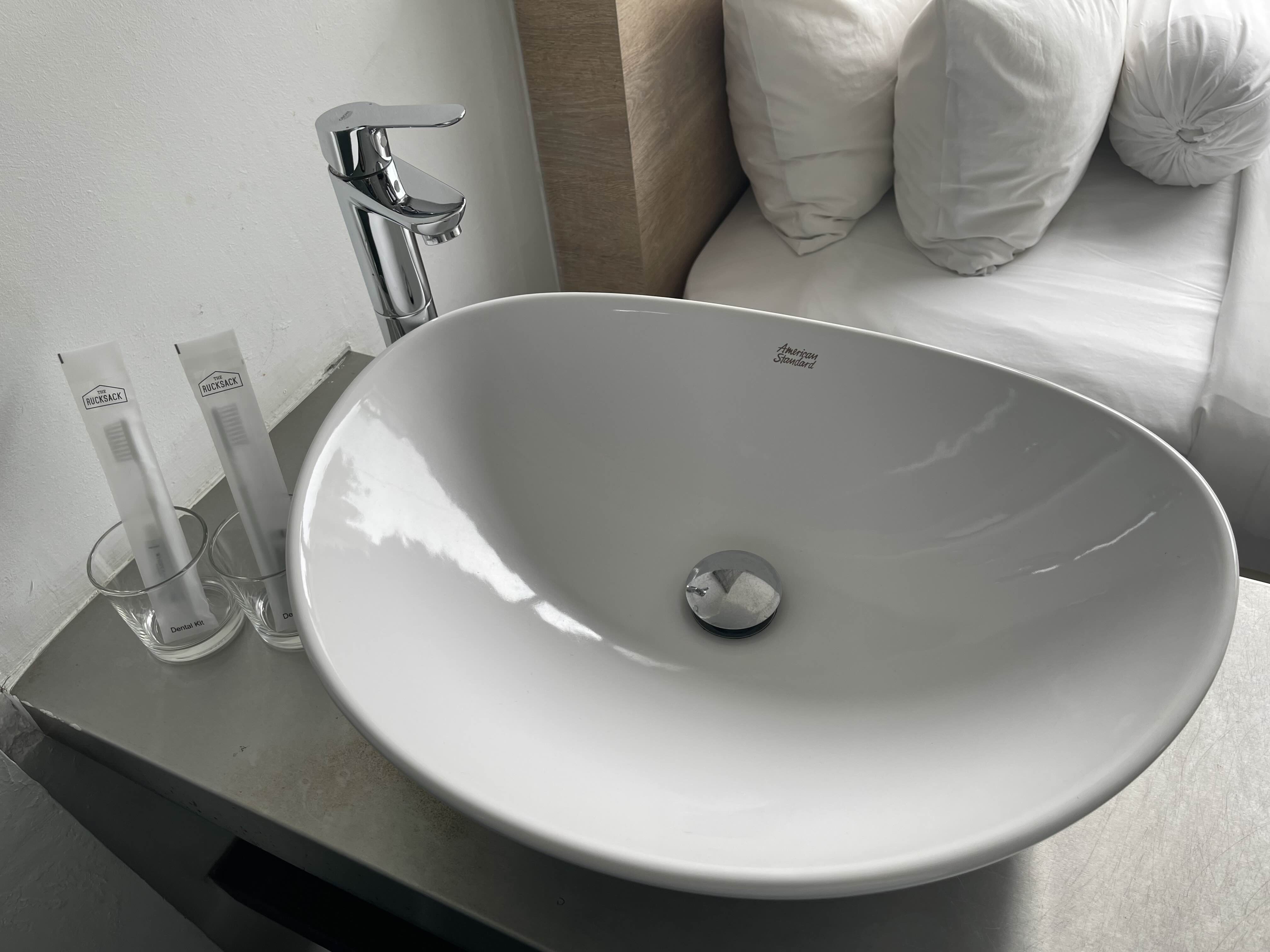 별도 의자나 테이블이 존재하지않고 세면대 옆 선반(?) 이 끝이였고