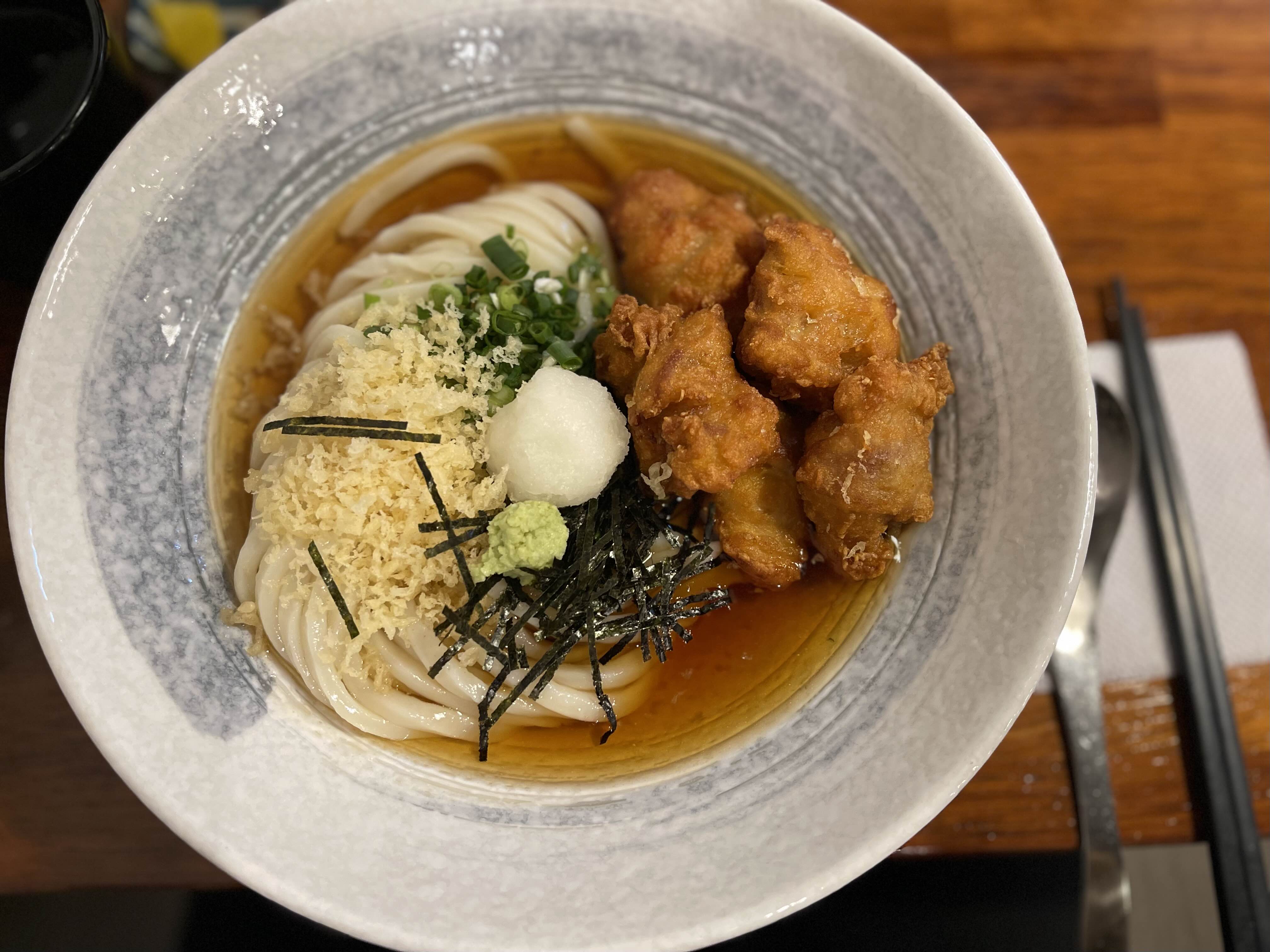 광면이는 붓카케우동 에비텐(새우)과 붓카케우동 가라아게(닭튀김)을 주문했어요.