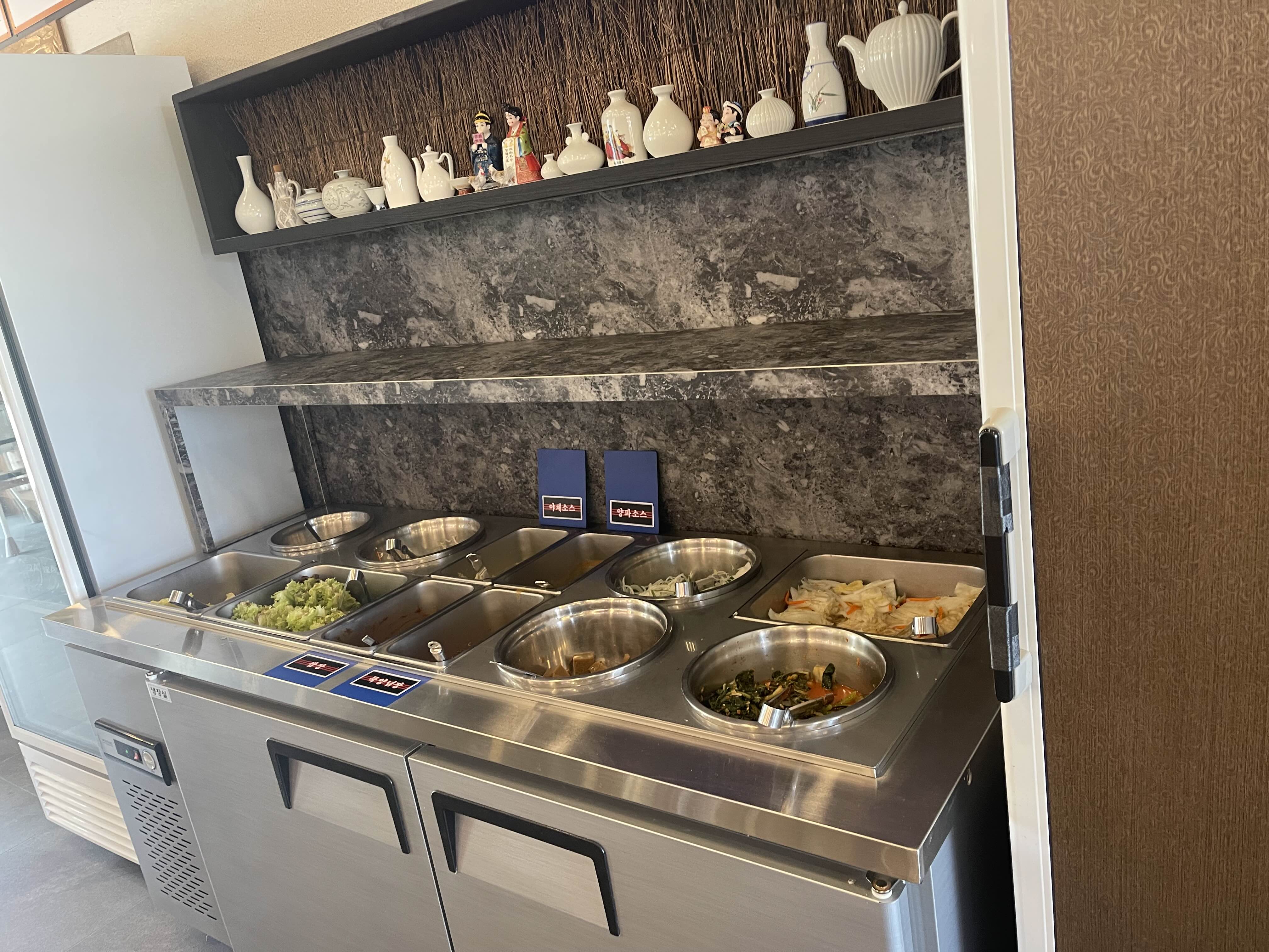 기본으로 가져다준 반찬을 클리어 한 후에- 요 그릇에 리필을 해오면 되겟섭니다.