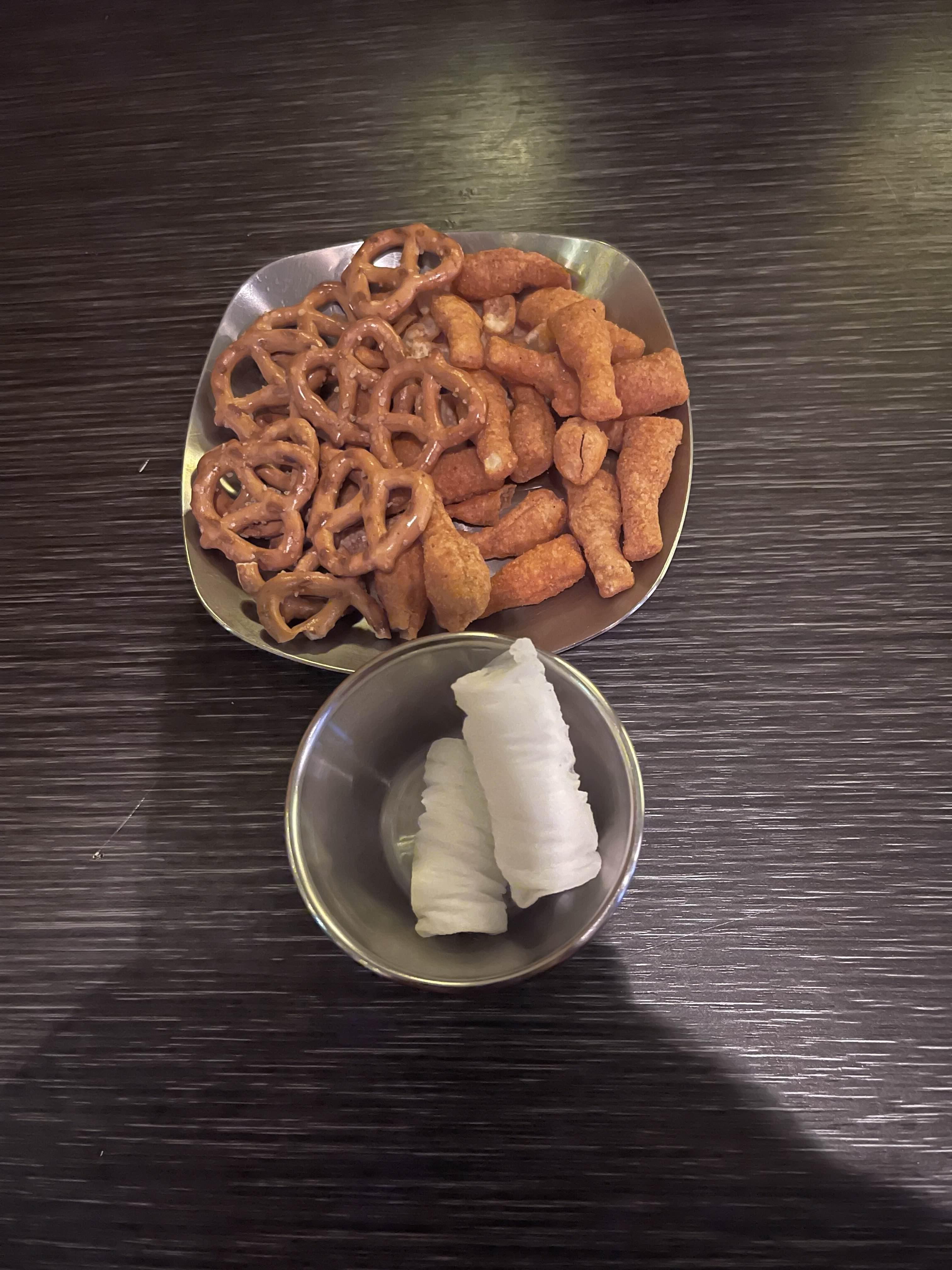 프레첼과 닭다리 과자가 나와주고요.