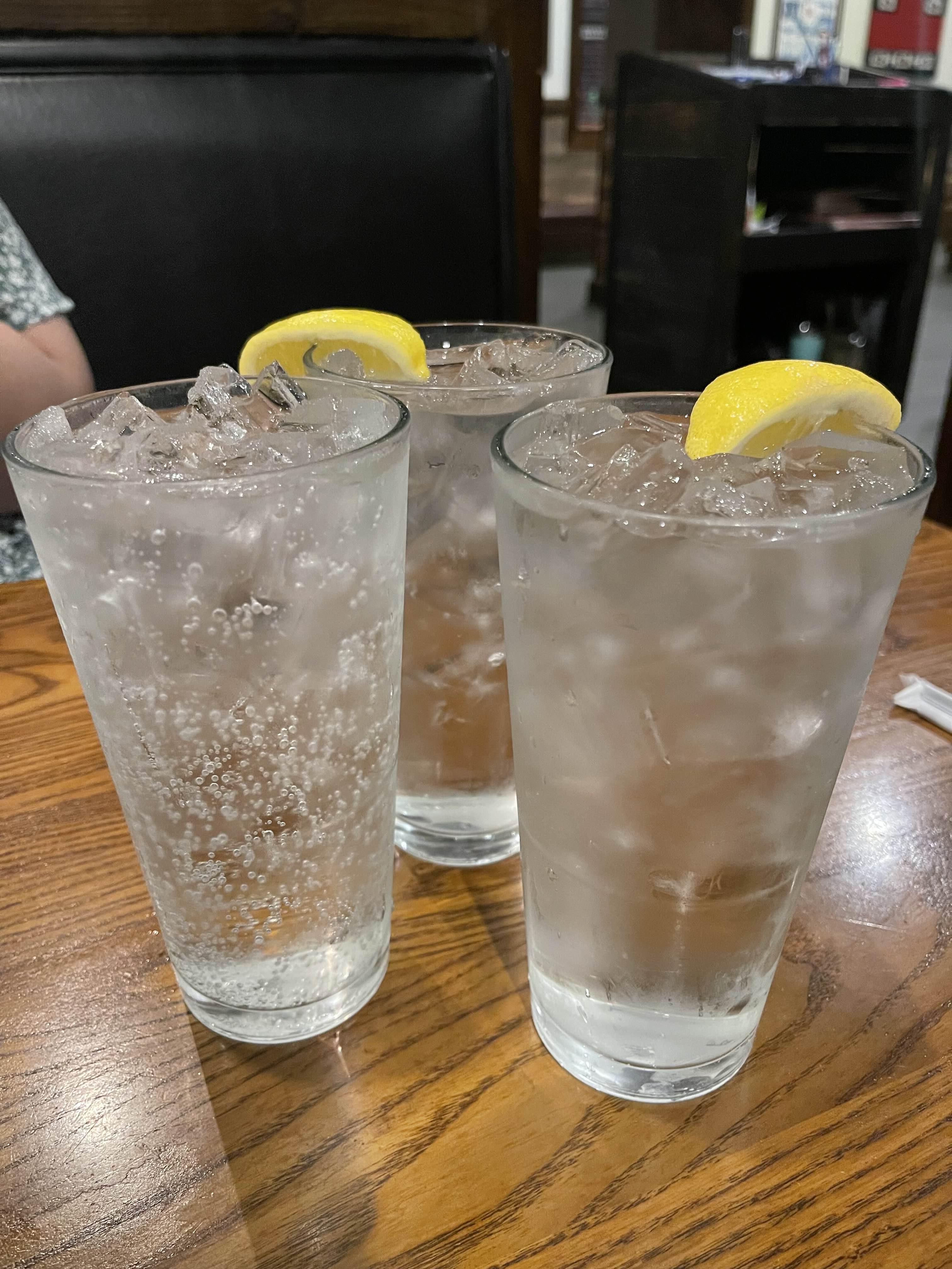 물컵에는 귀엽게 레몬조각도 꽂혀있어요.