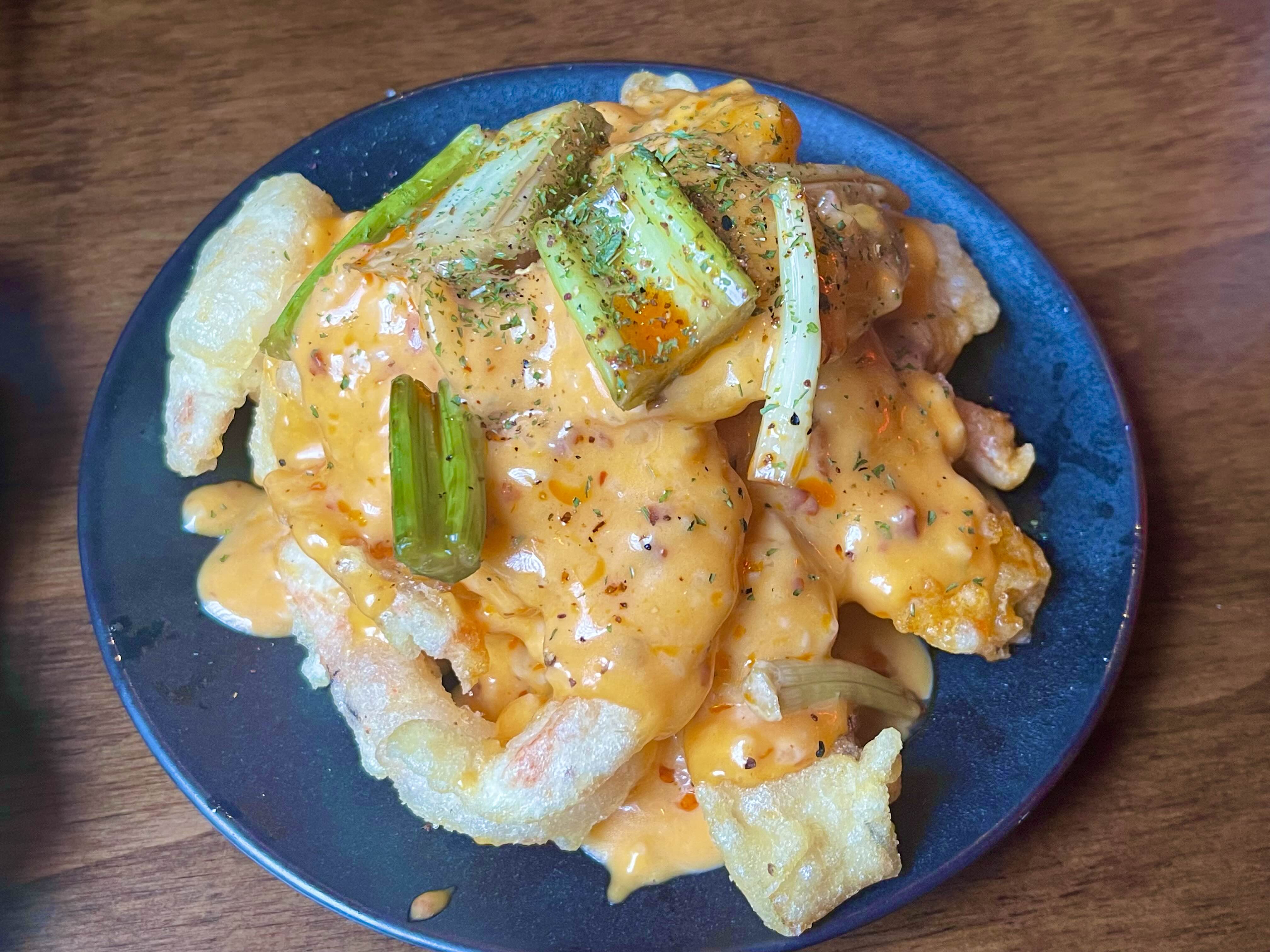 탱글탱글 새우튀김, 촉촉한 새송이버섯튀김과 마라 마요 소스 조합이 좋았어요.