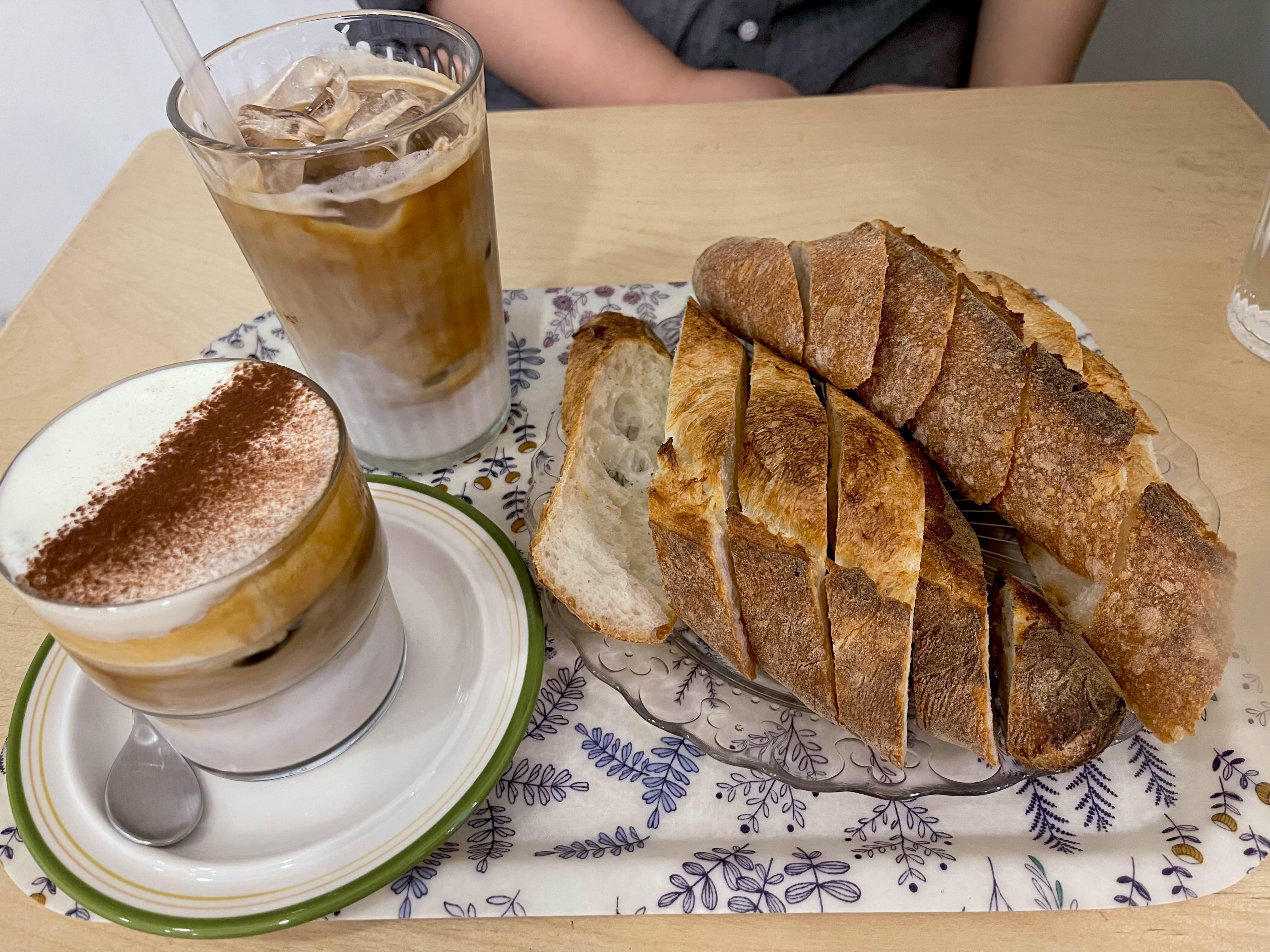 광면이는 카페라떼와 크림라떼, 그리고 바게트를 주문했어요.