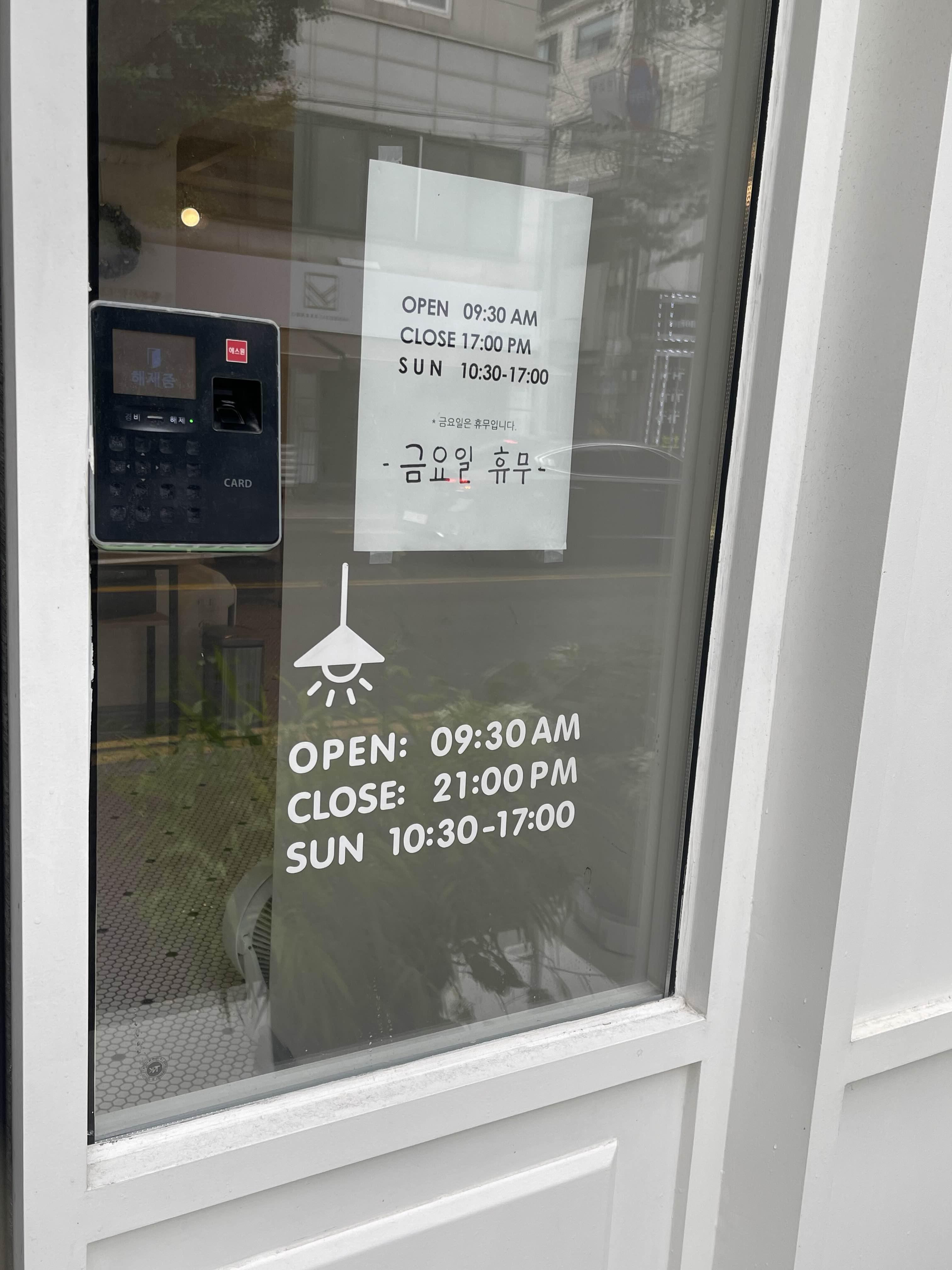 창에 붙어있는건 21시 마감인데 위에 종이에 붙은건 17시 마감이더라구요.