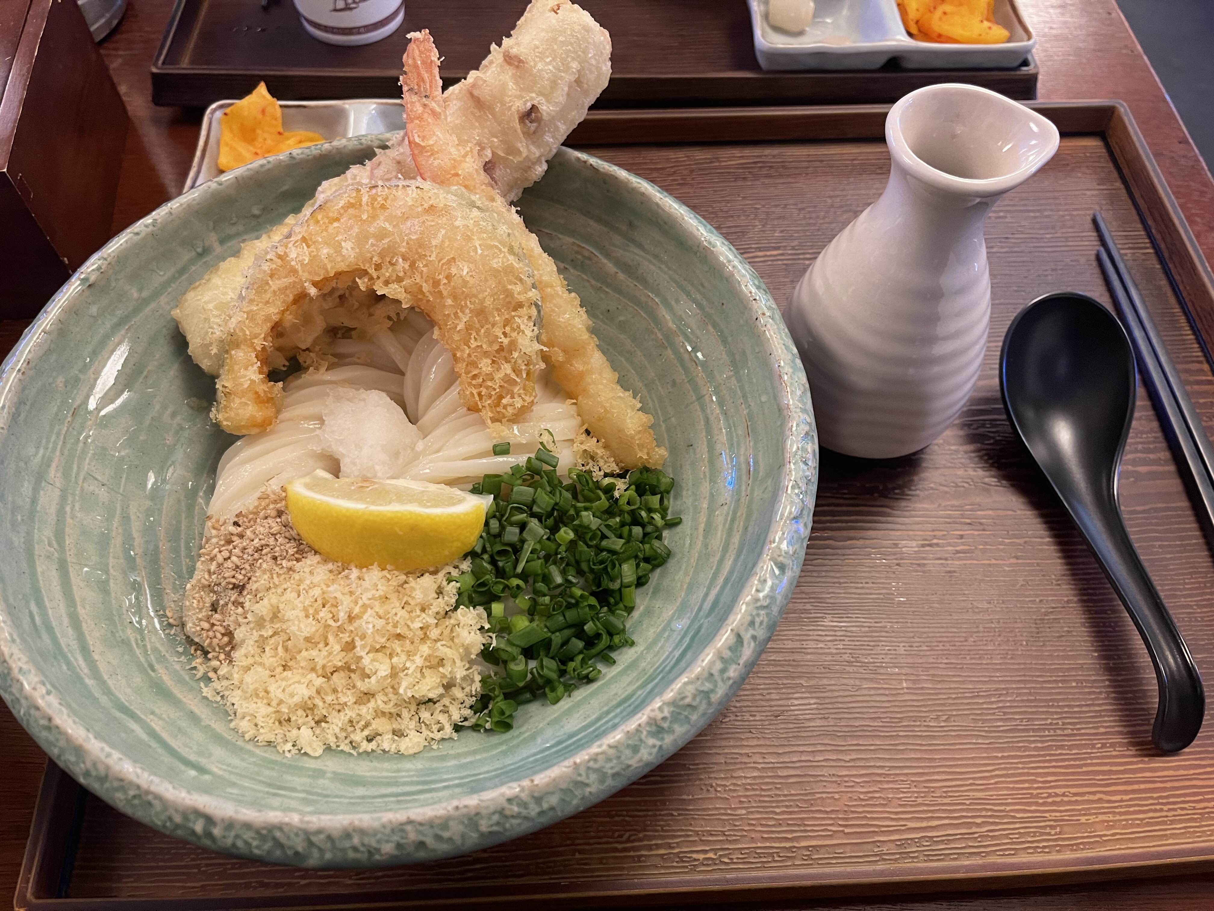 광면이는 붓가케우동과 튀김이추가된 텐 붓가케우동을 주문했어요.