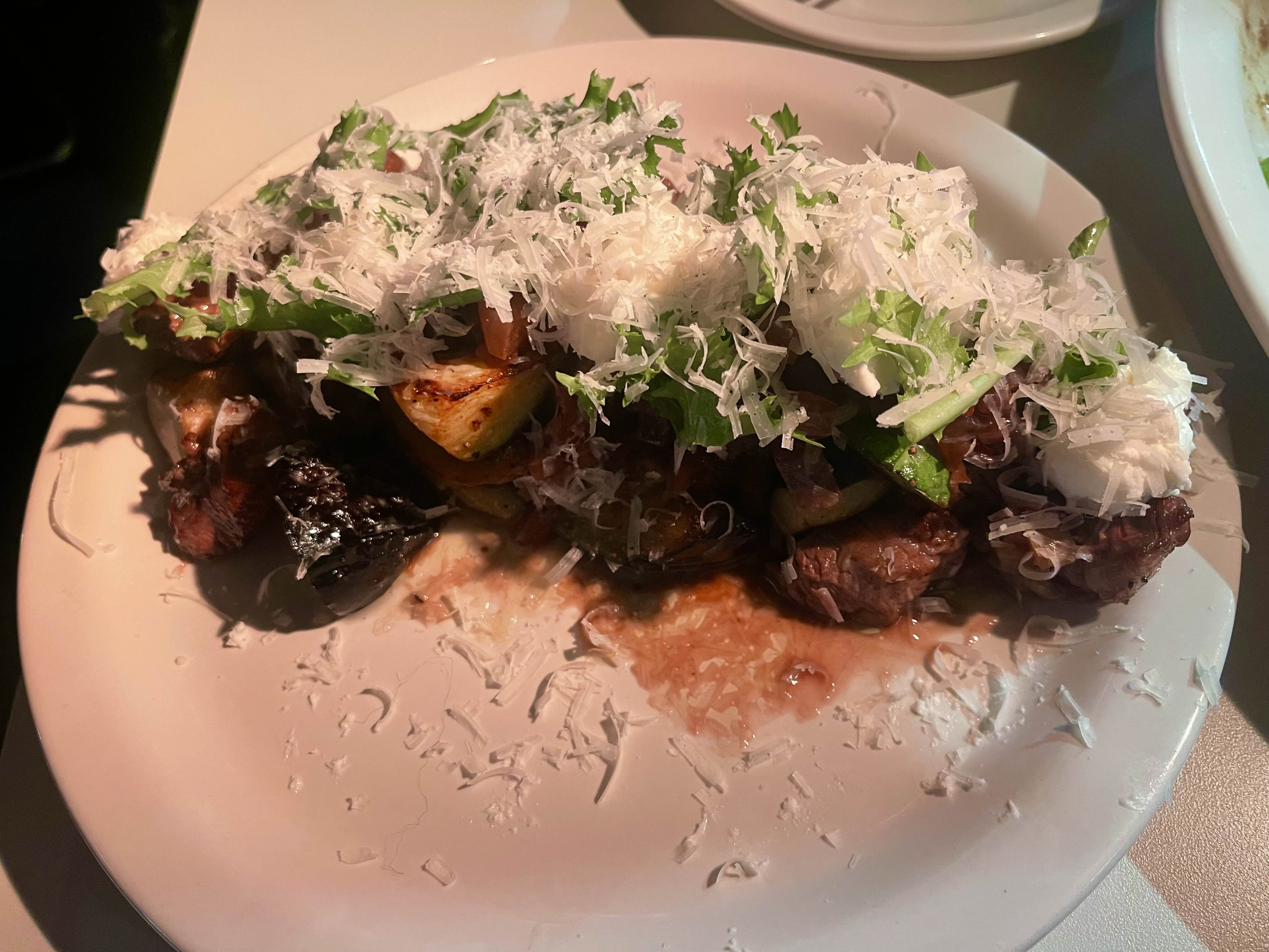 라따뚜이위에 치즈와 잘구워진 갈빗살 스테이크의 조합이 아주 맛있었어요.