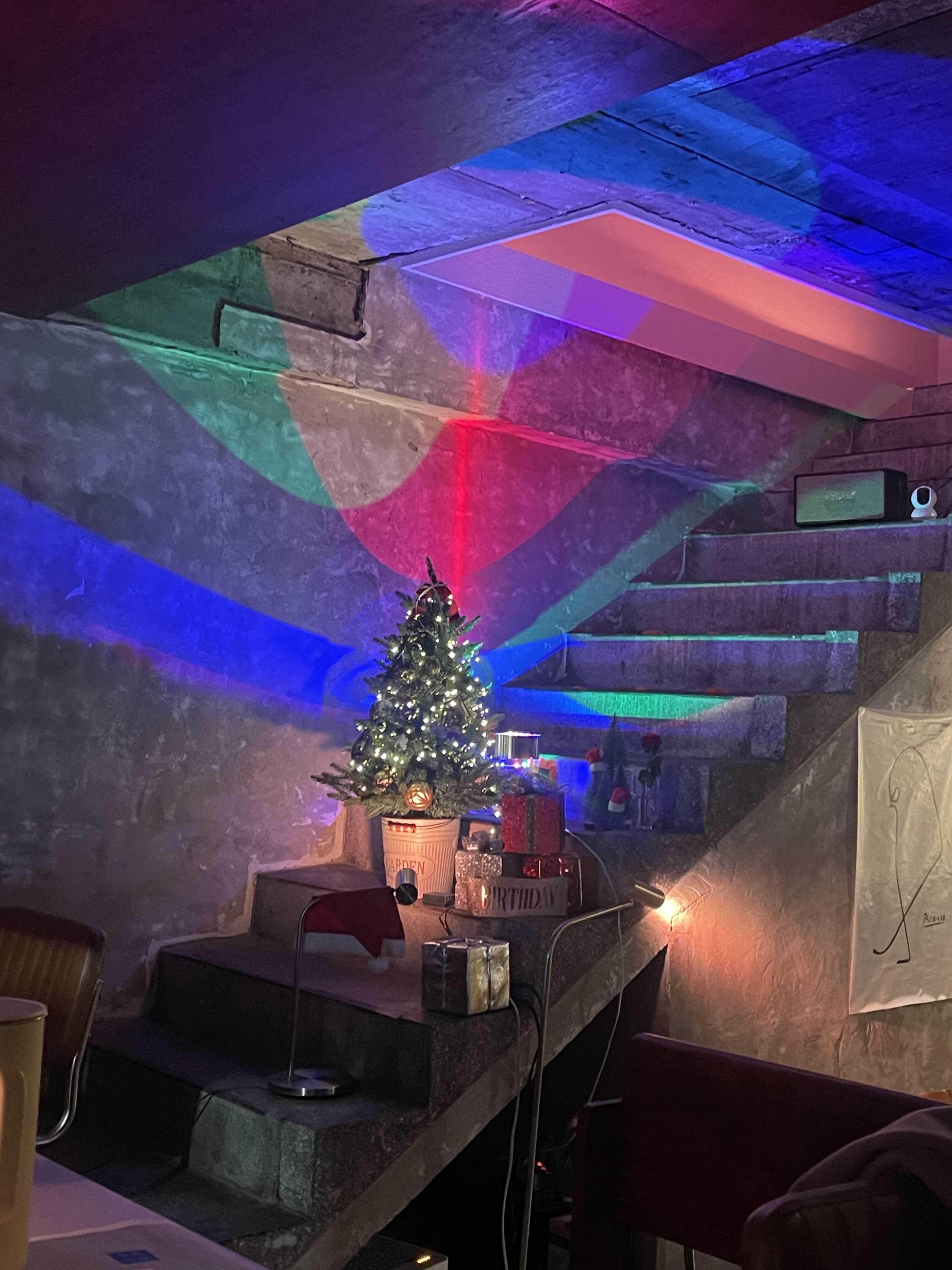 크리스마스 분위기를 내뿜는 계단을 열심히 올라가면