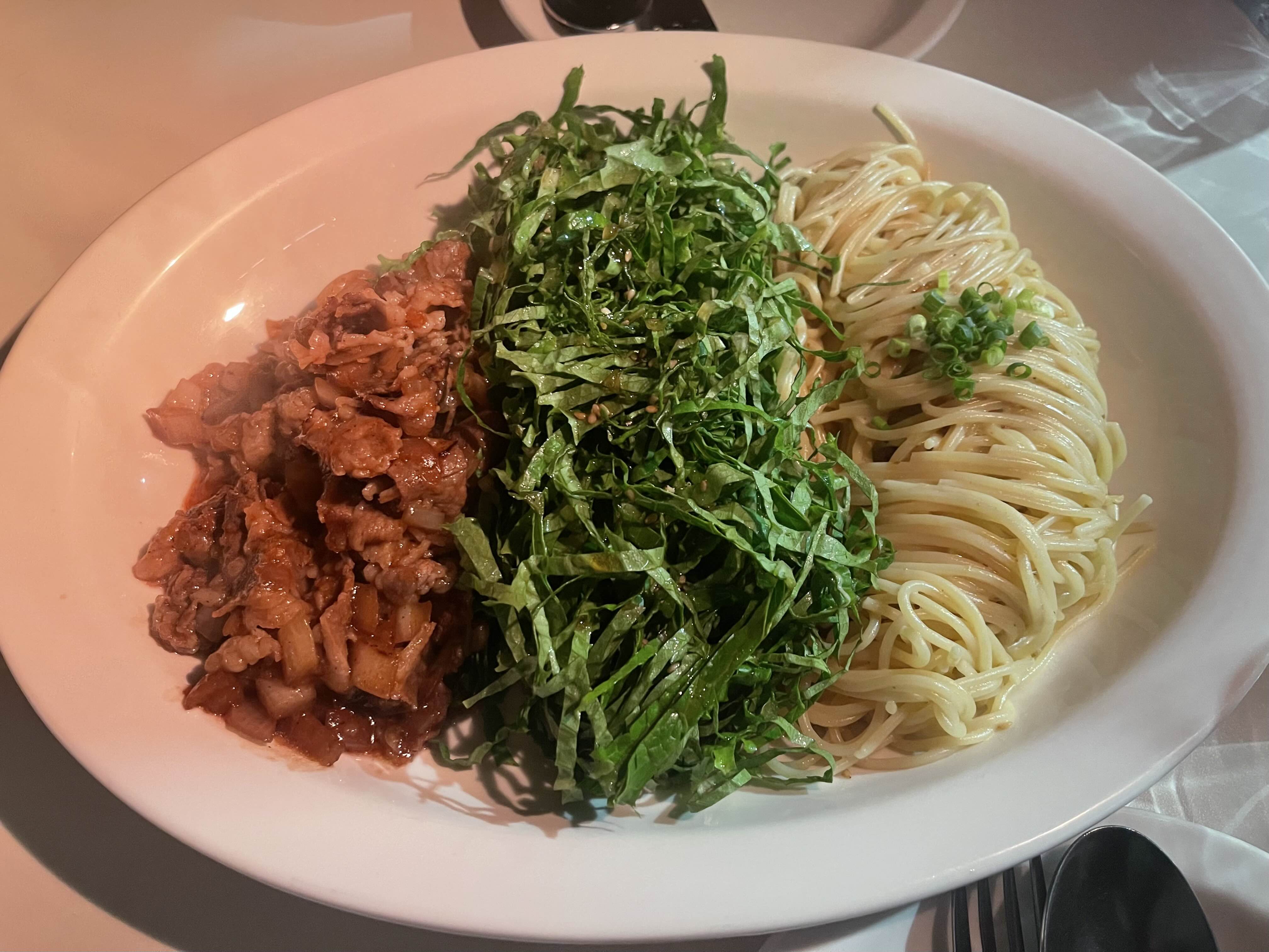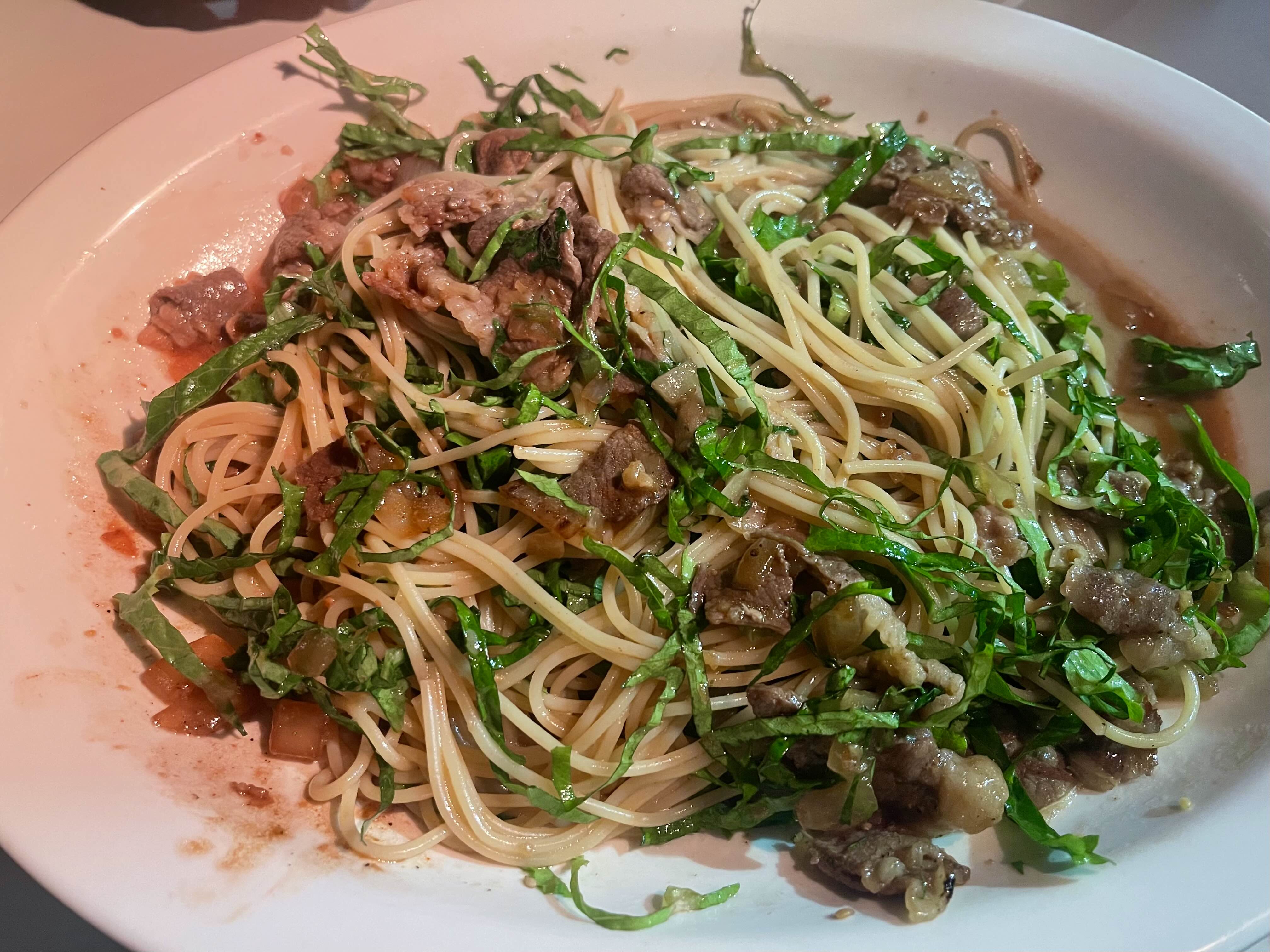 차돌박이, 파스타 ,샐러드의 절묘한 조합의 문화식당 시그니처메뉴래요.