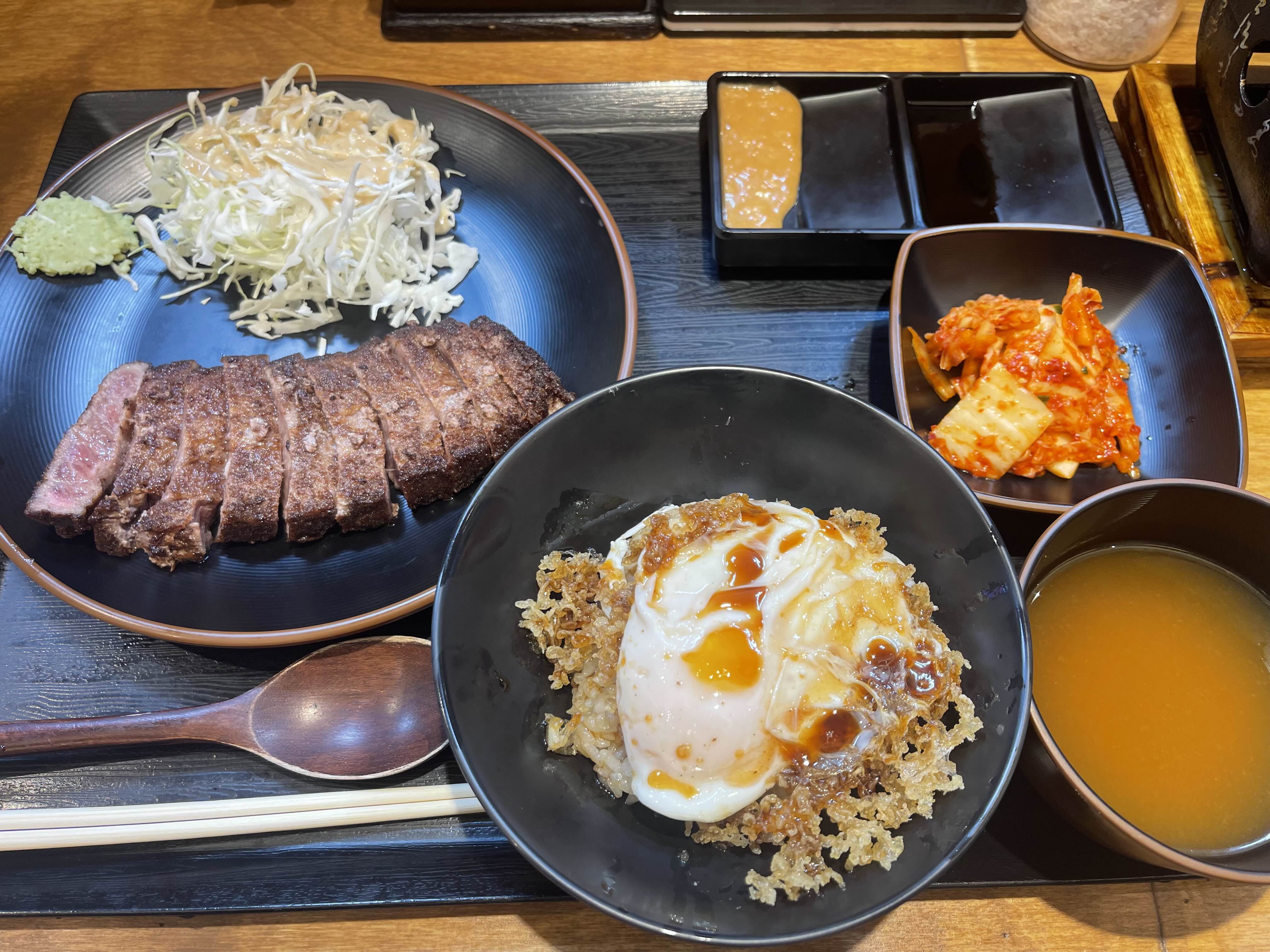 규카츠 타마고텐동 정식이예요.