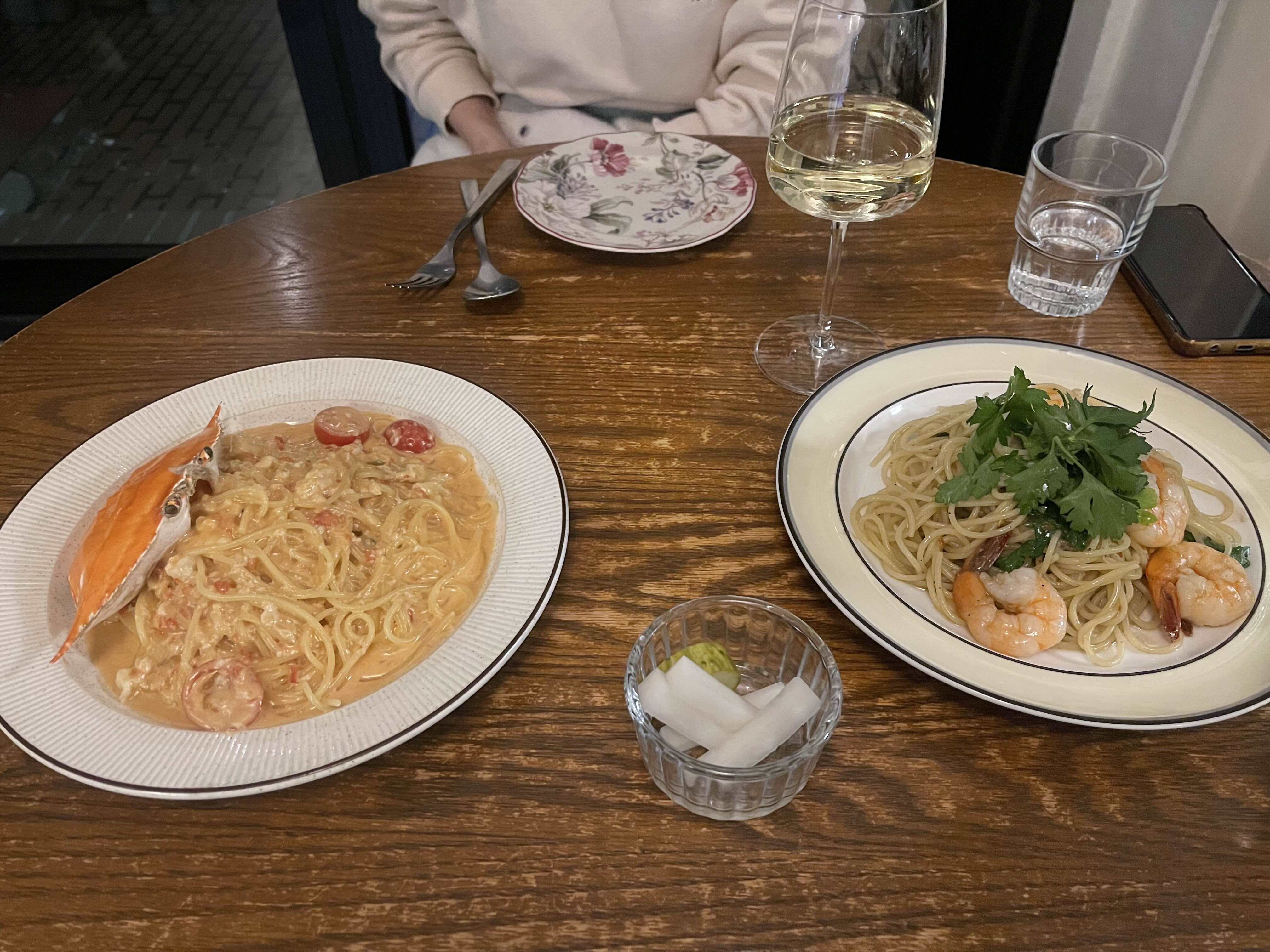 광면이는 통꽃게 로제파스타와 오늘의파스타(새우 엔초비파스타)를 주문했어요.