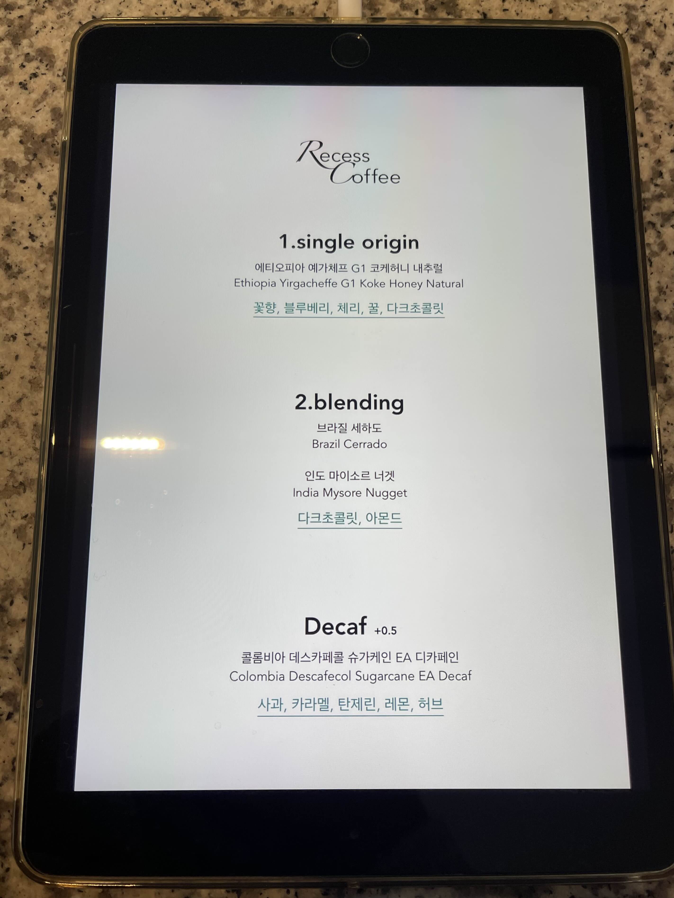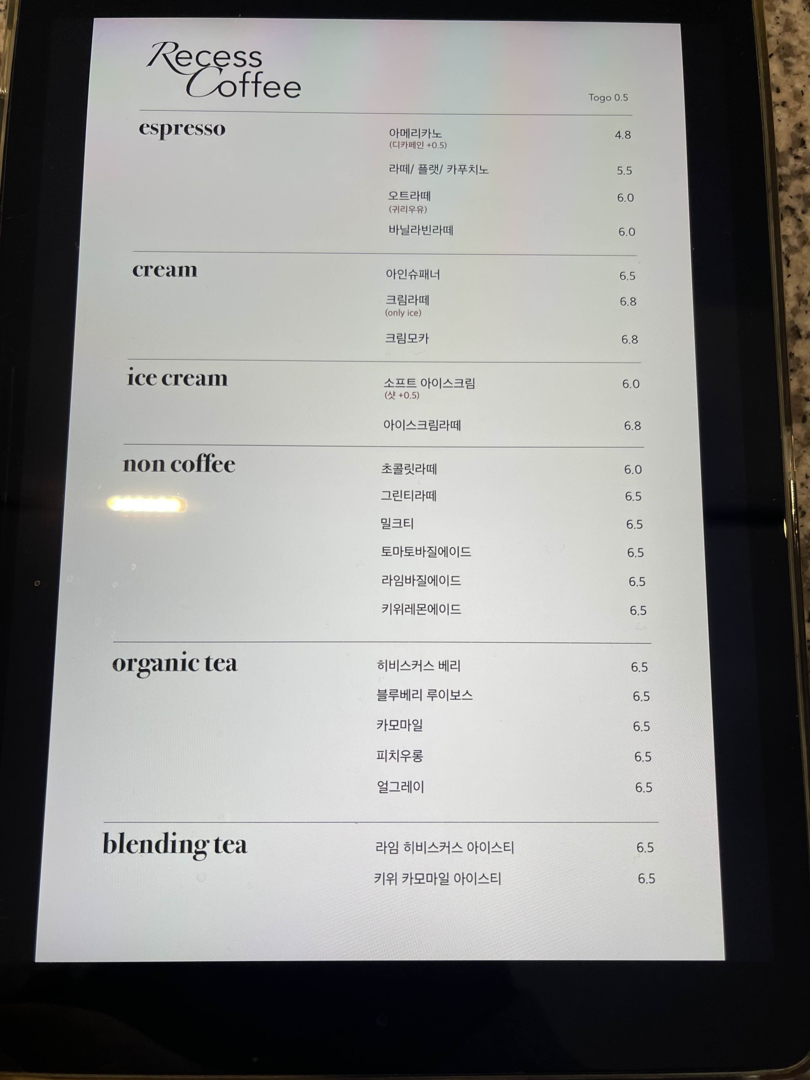 요로코롬 태블릿에 매뉴를 띄워두셧더라구요.