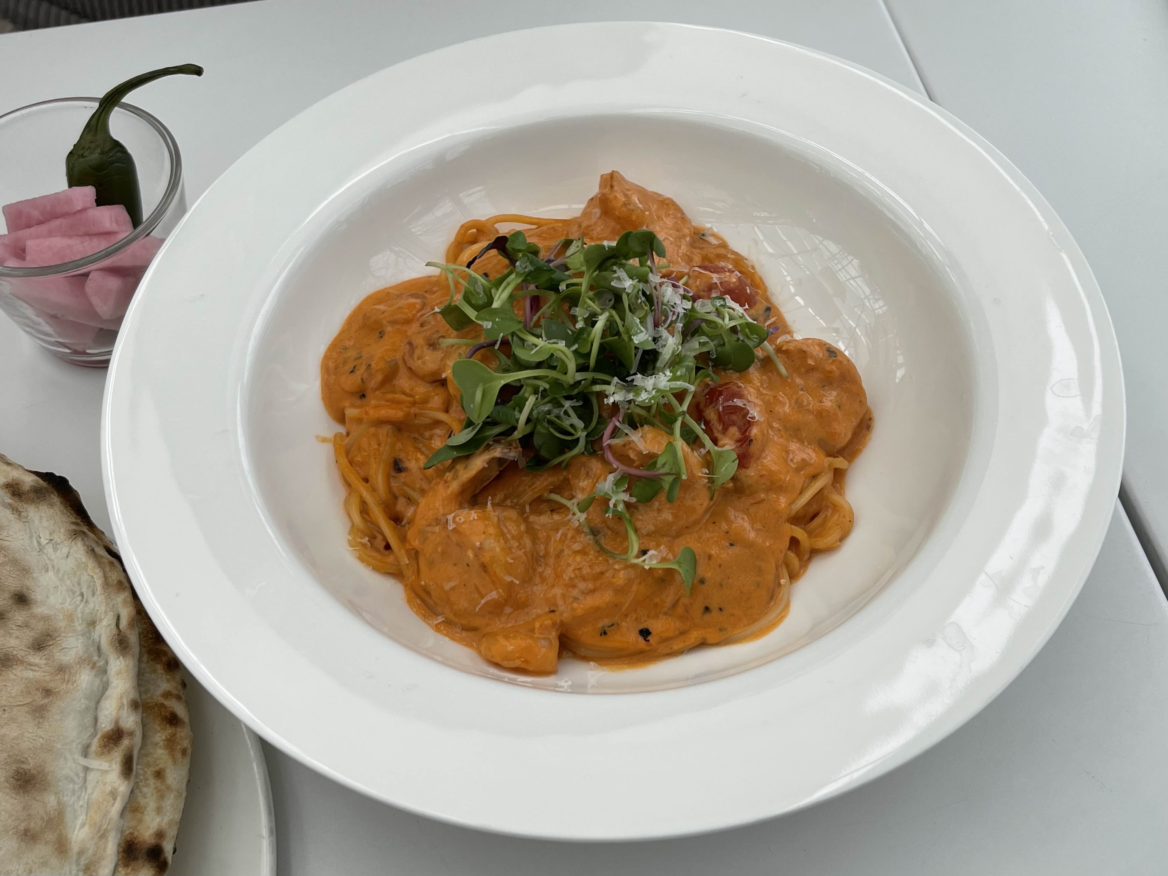 광면이는 버섯크림 깔조네와 새우로제 파스타를 주문했어요.
