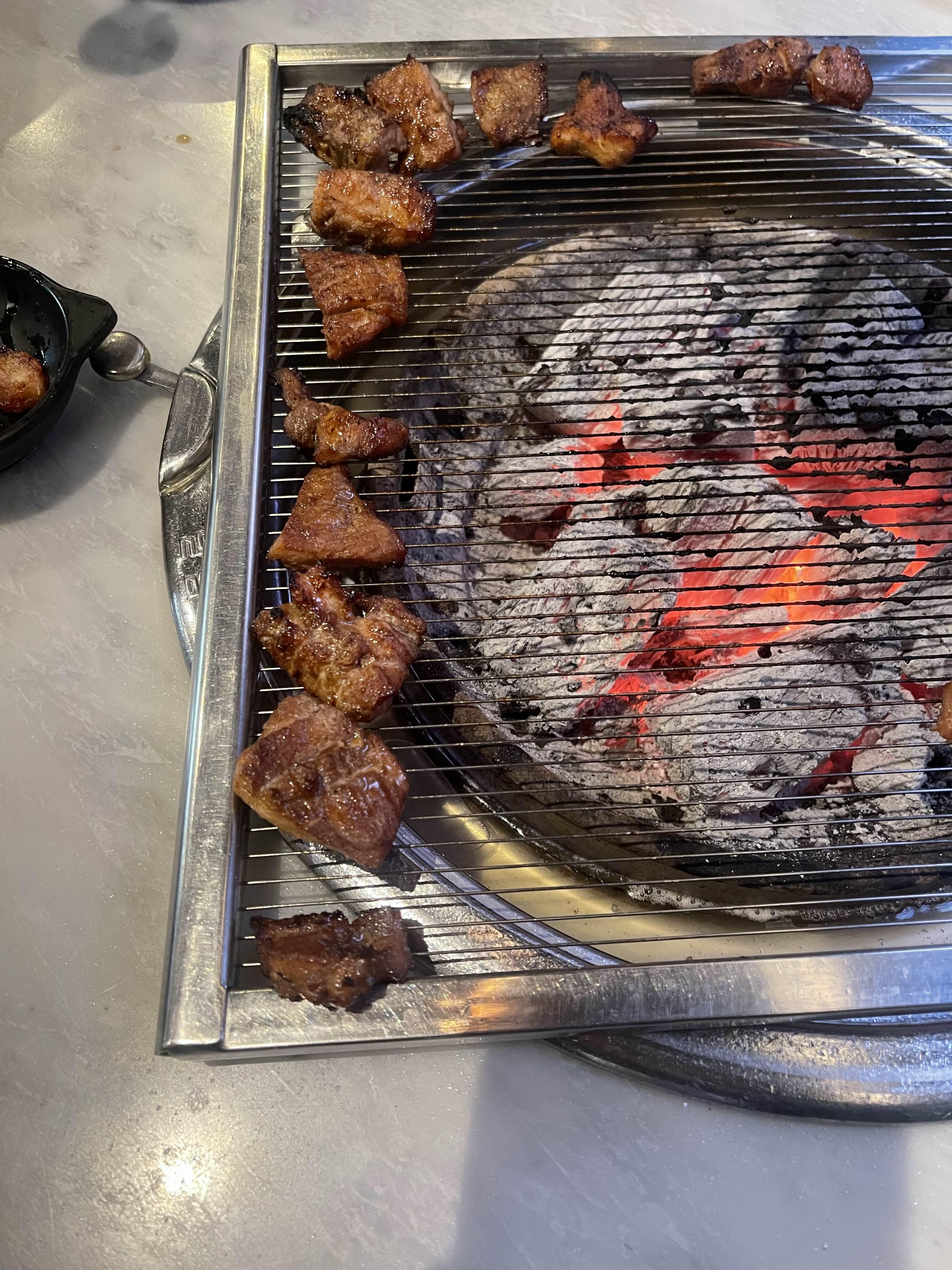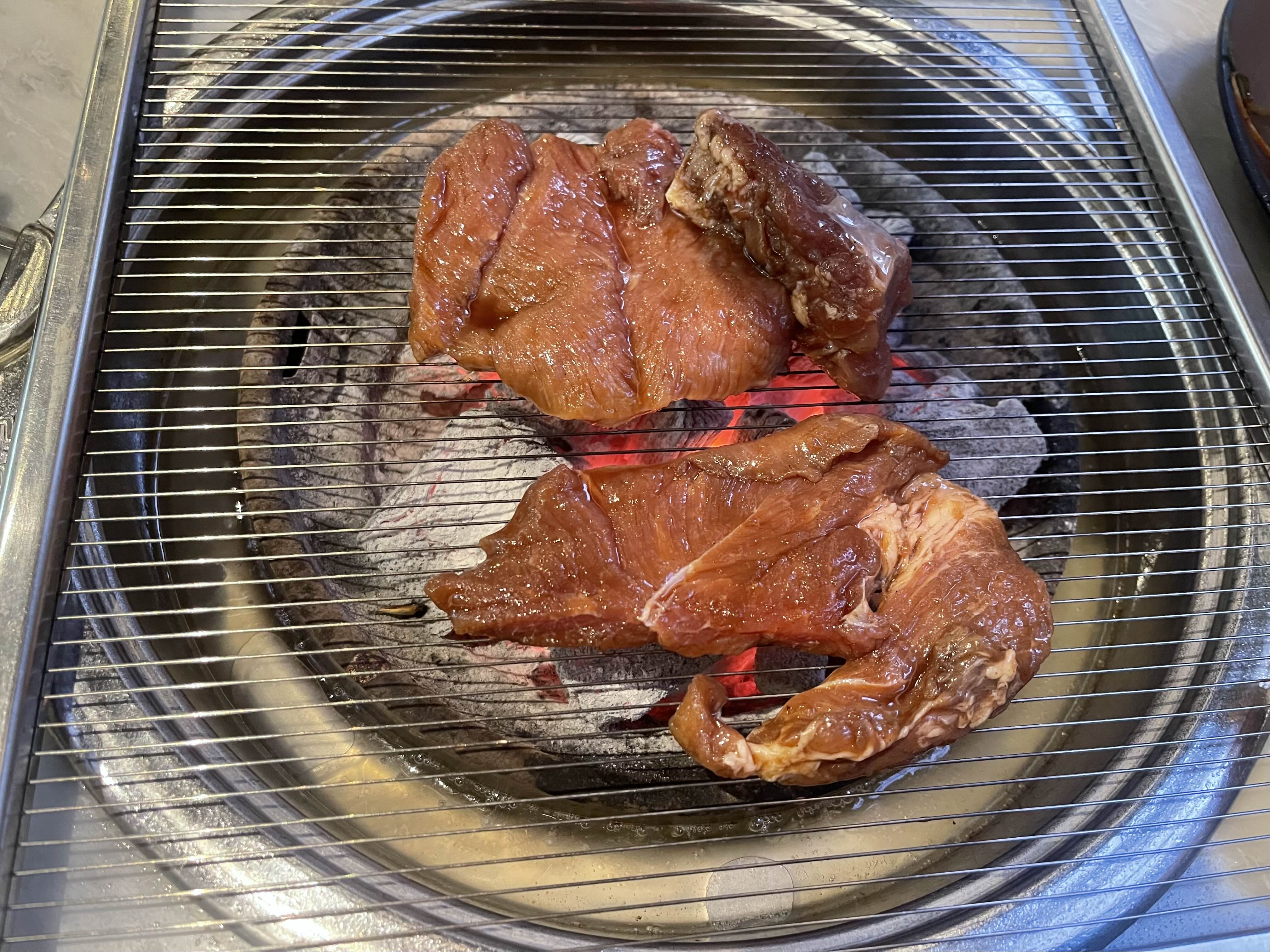 양념고기는 잘 타기 때문에 쉼없이 뒤집어주는게 광면이의 팁이예요.