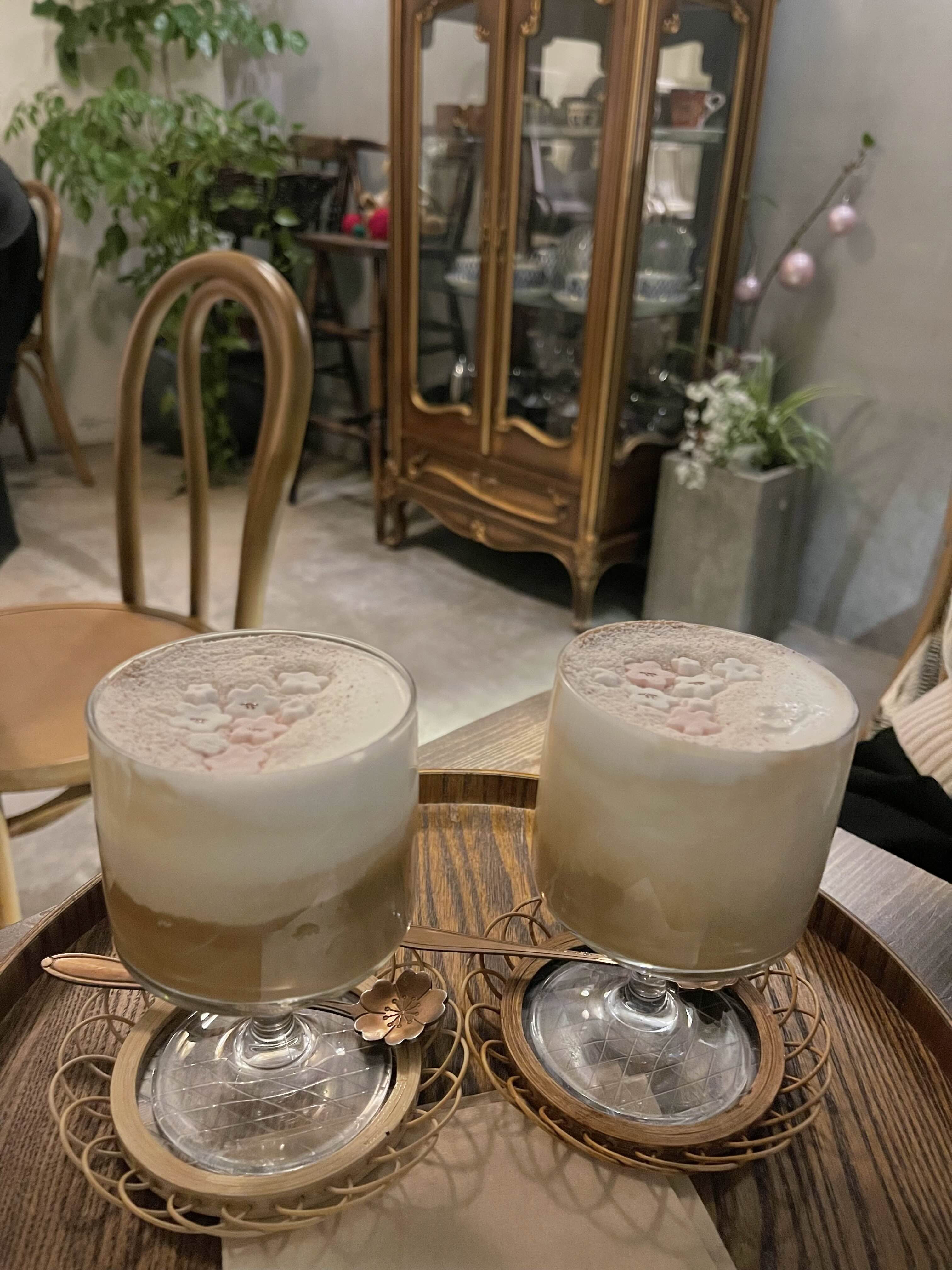 광면이는 시그니처로 보이는 벚꽃집 크림라떼를 주문했어요.