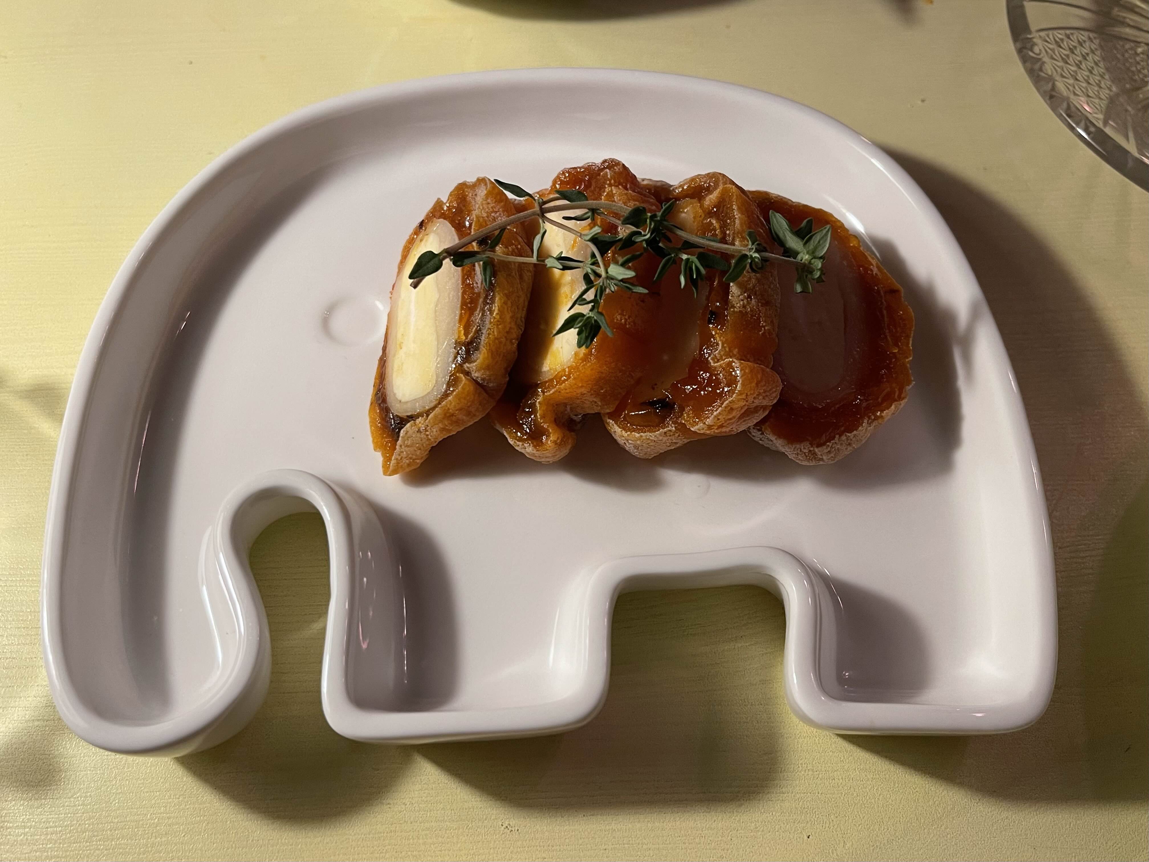 크림치즈가 찰떡에 감싸져있고 찰떡을 맛좋은 곶감으로 말아놓은 메뉴..!