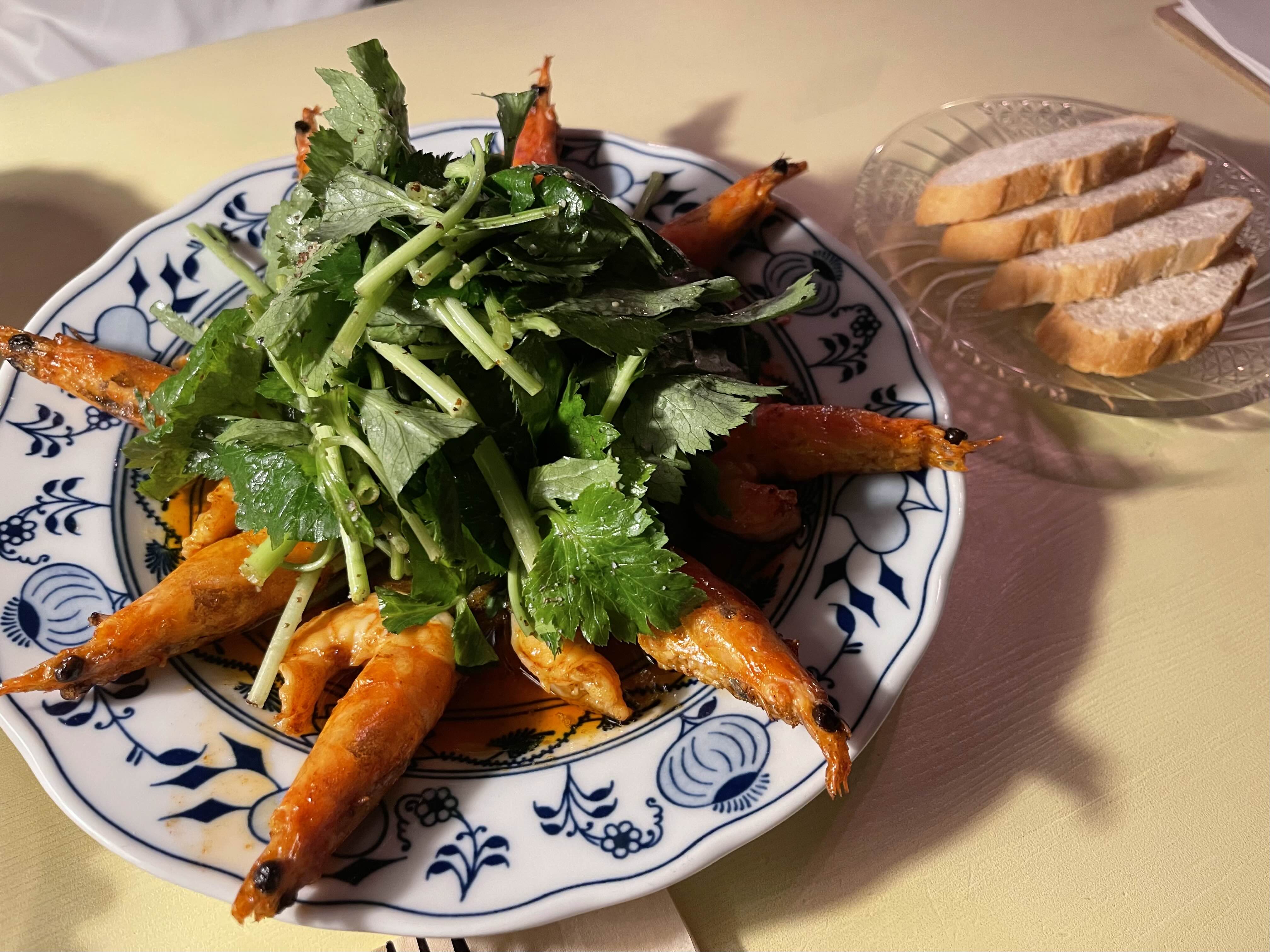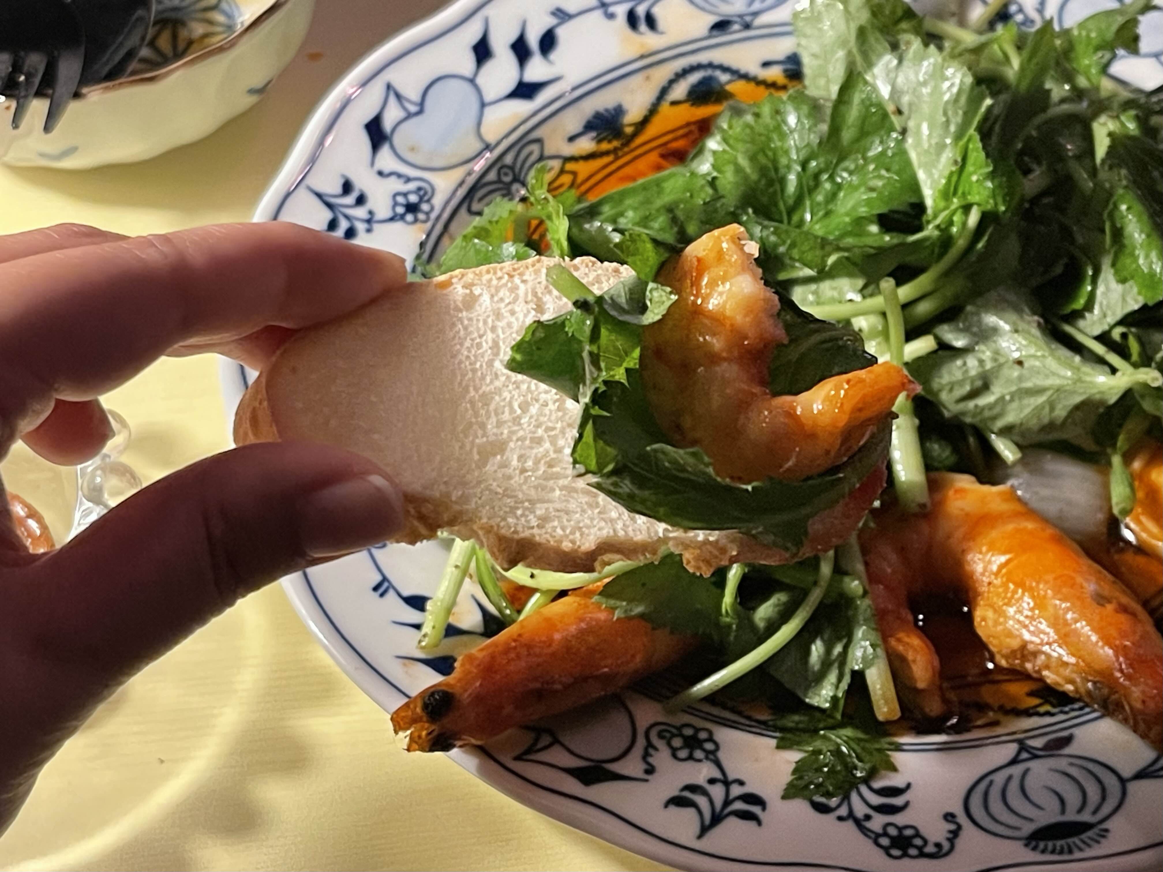참나물 조금과 새우 두마리정도 남기는게 적당한것같아요.