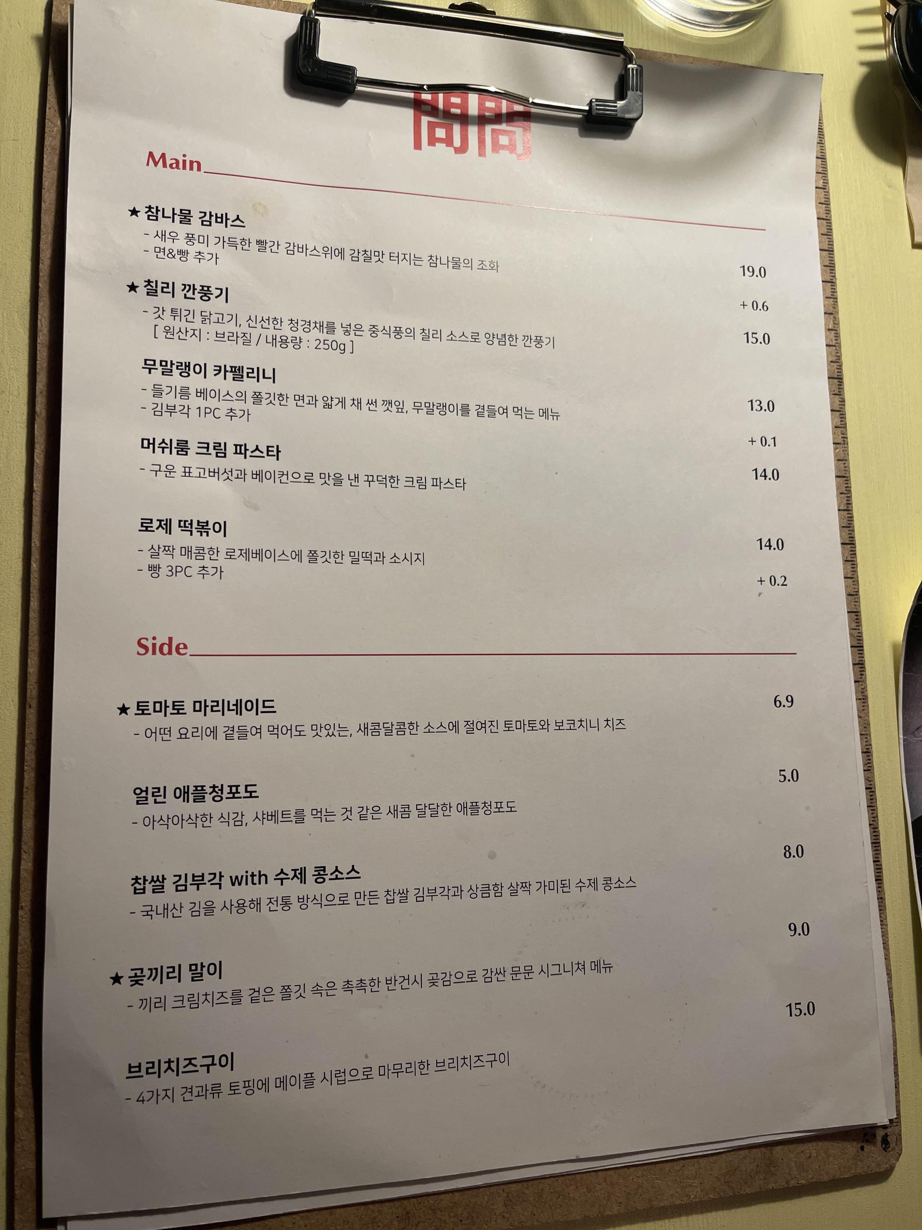 광면이는 참나물감바스에 빵&면을 추가했고,