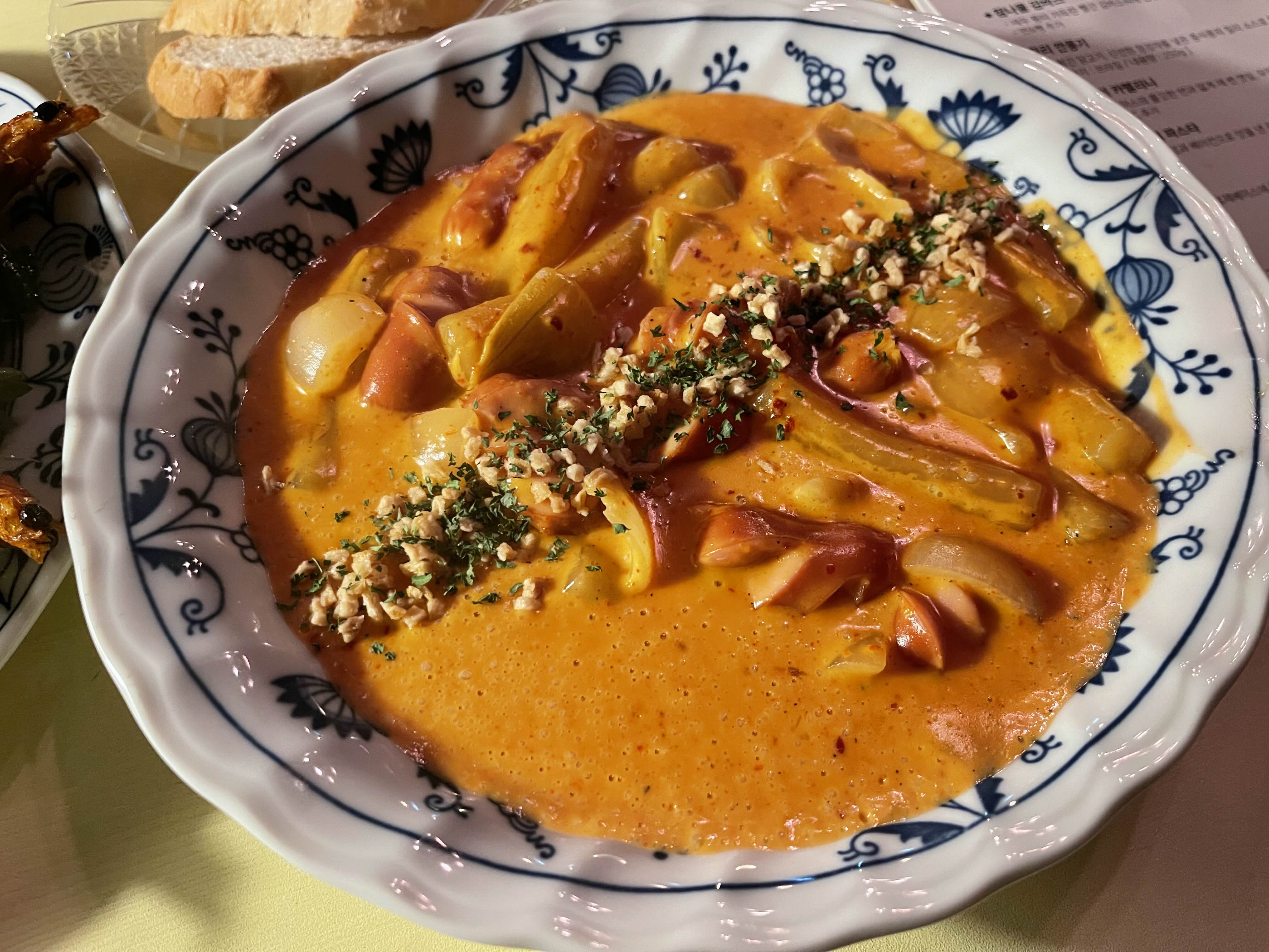 꾸덕꾸덕 매콤 로제소스와 함께먹는 양파도 매력넘쳐요.
