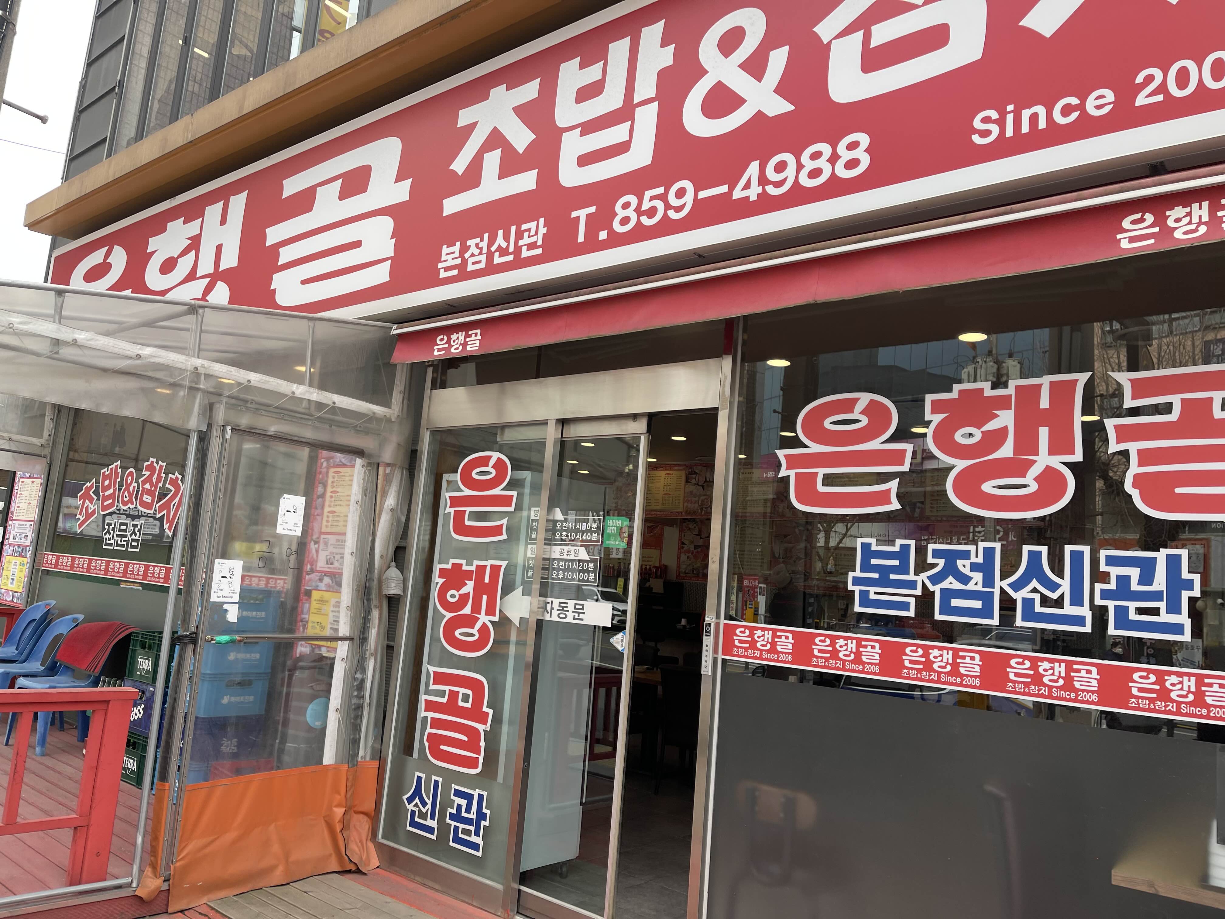 빨간 간판에 흰 글씨가 나의눈을 사로잡아요.