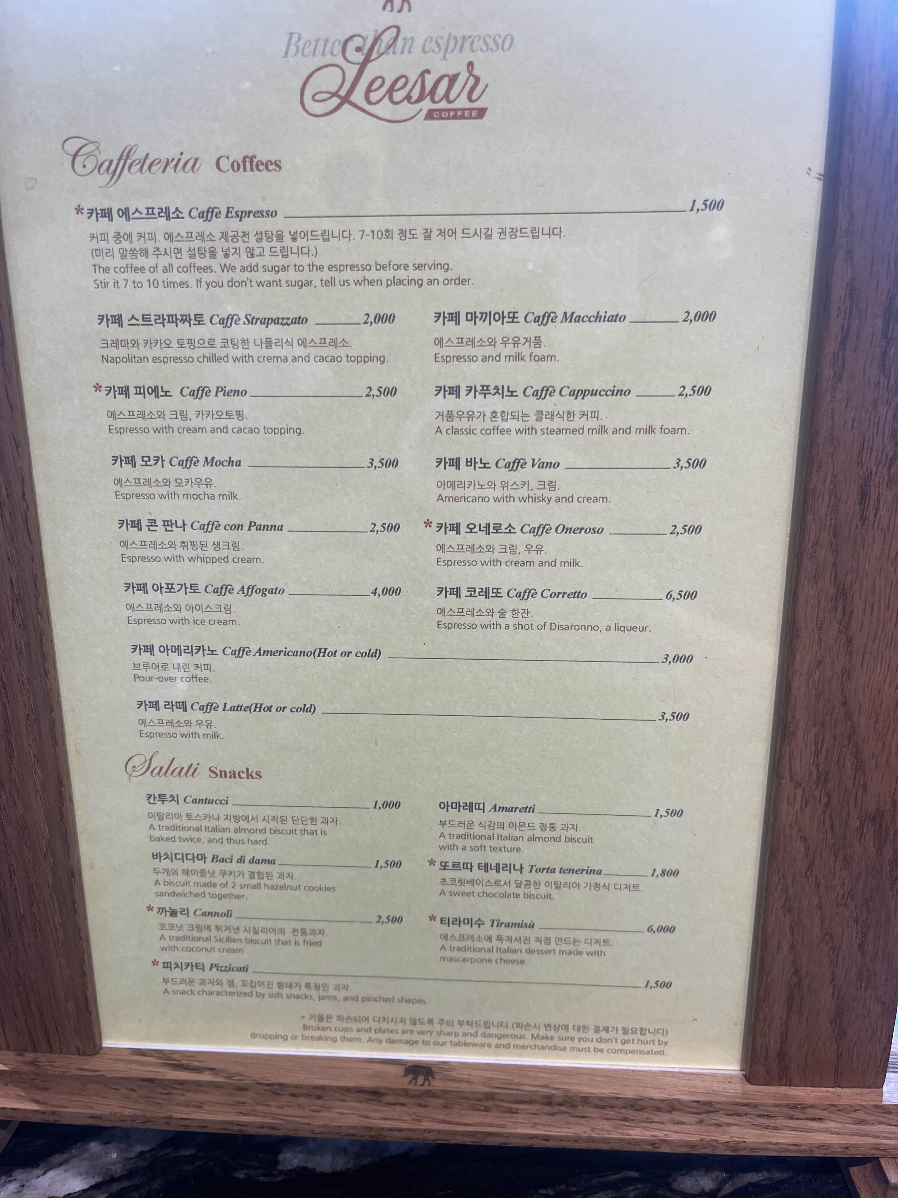 섭하니까 카페 에스프레소와 아메리카노, 라떼를 주문했어요.