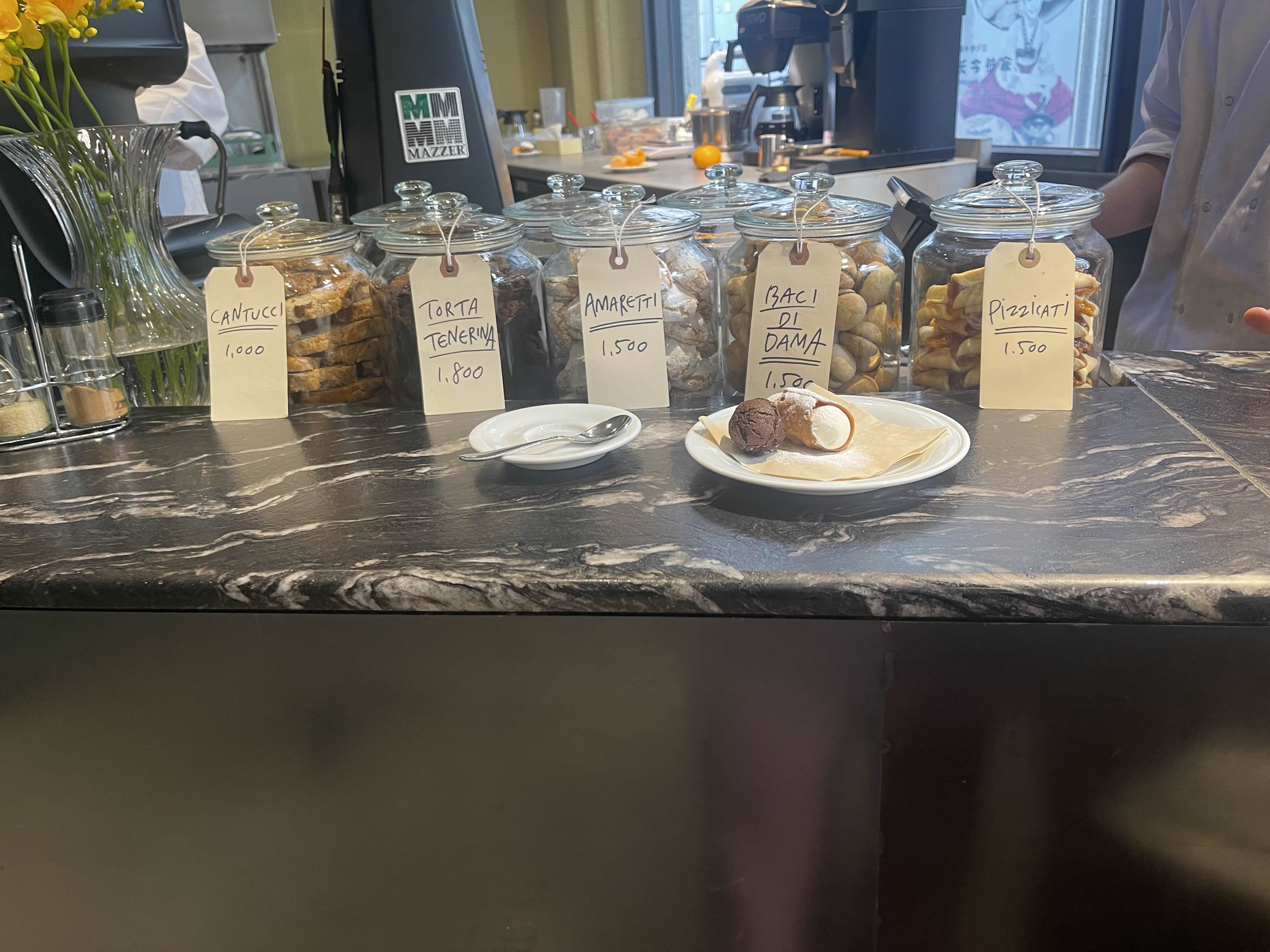 시원~한 크림이 들어있는 까놀리는 큰입으로다가 한입에도 먹을수 있는 크기예요.