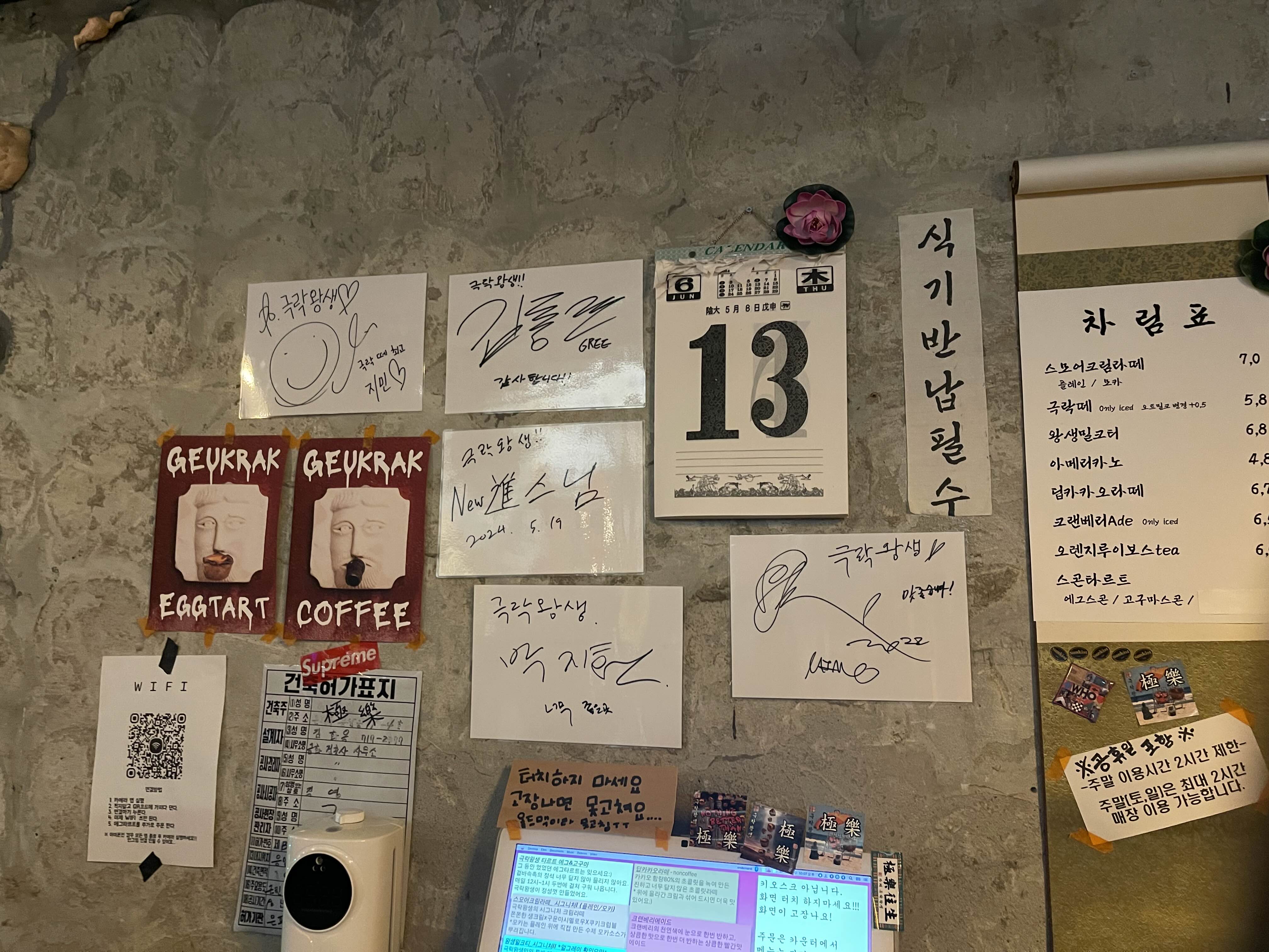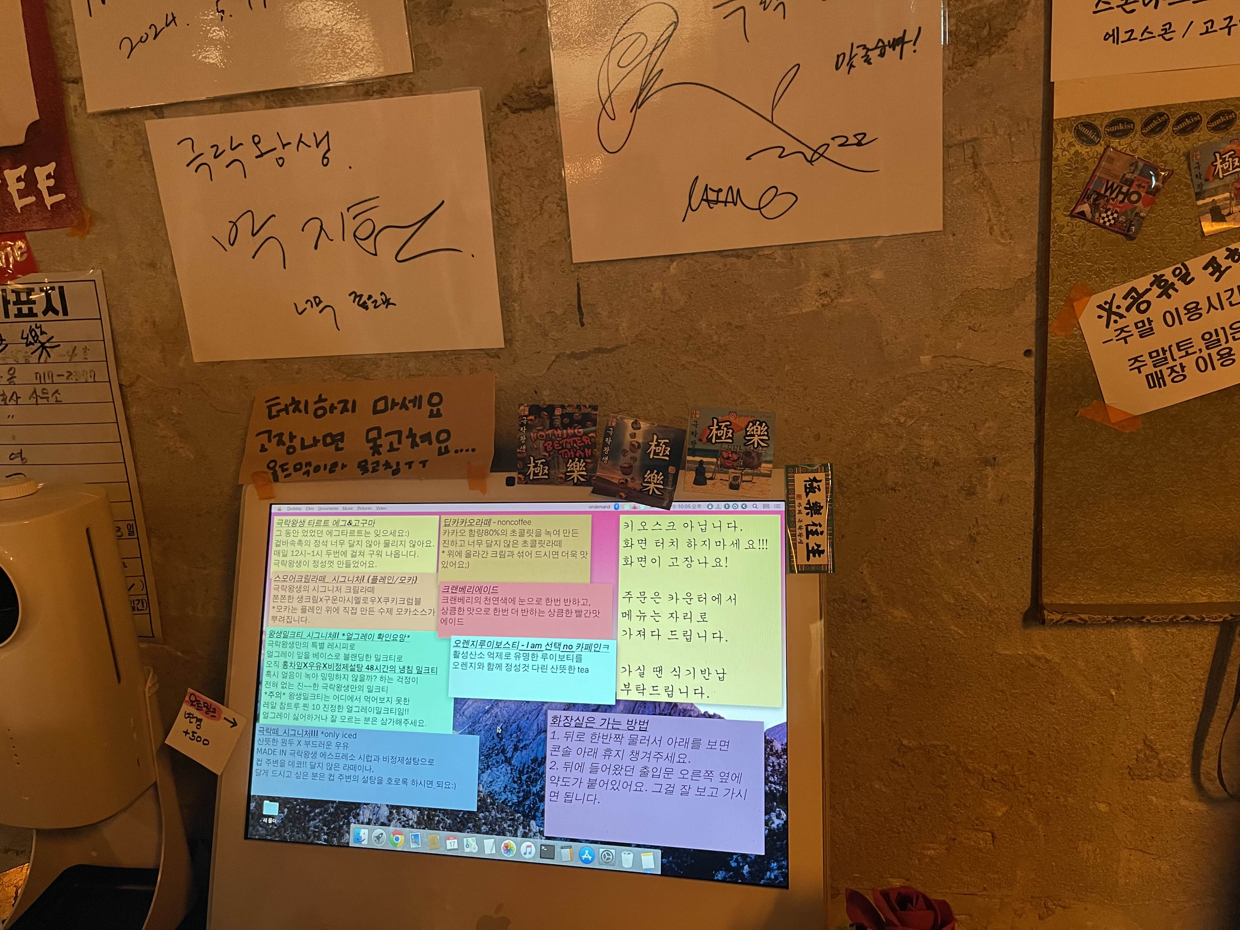 메뉴 위에 사인들이 나의 눈을 사로잡아요.
