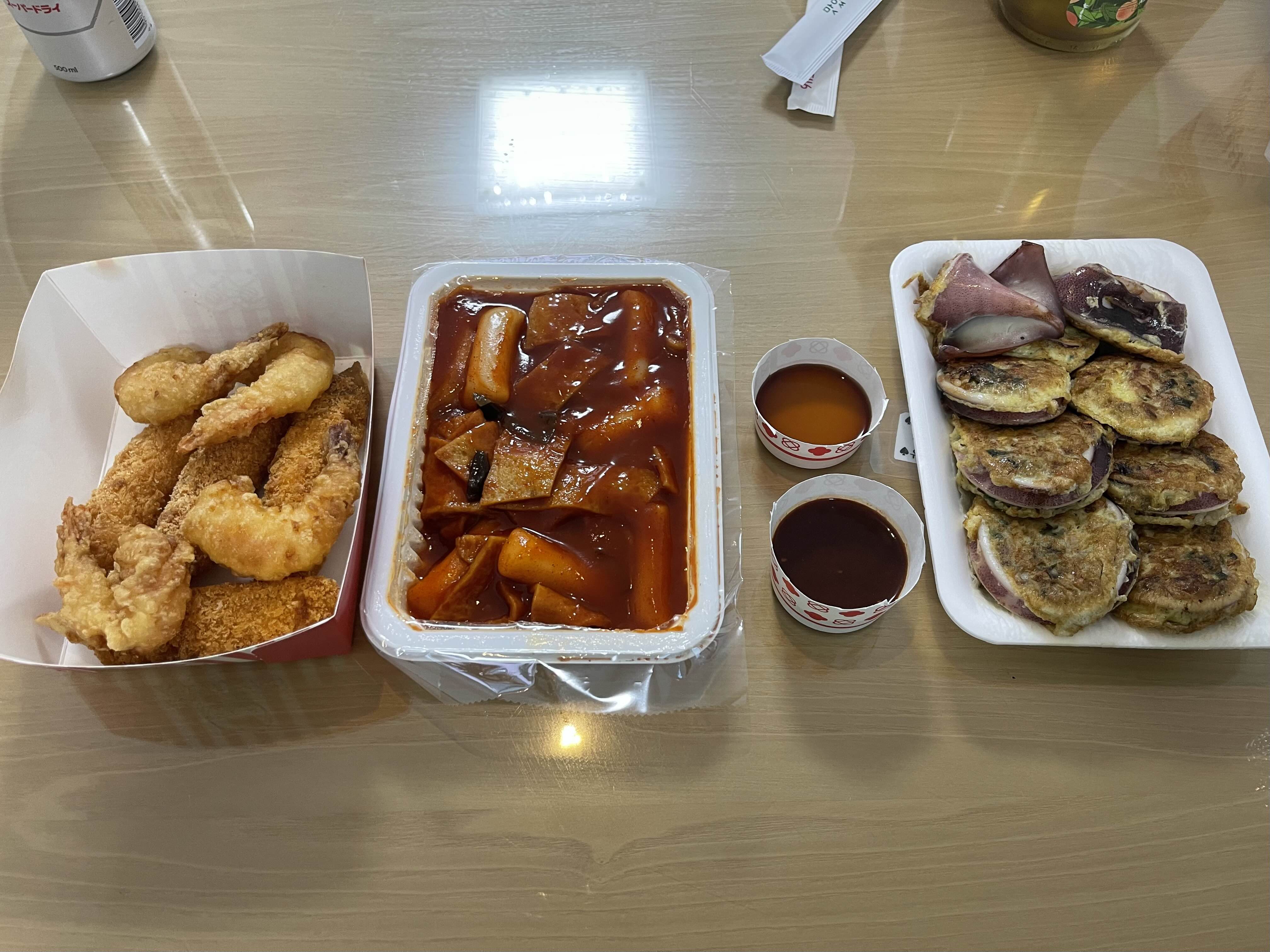 입실 전 속초시장에서 챙겨온 먹거리들과 함께 하루를 마무리혀요