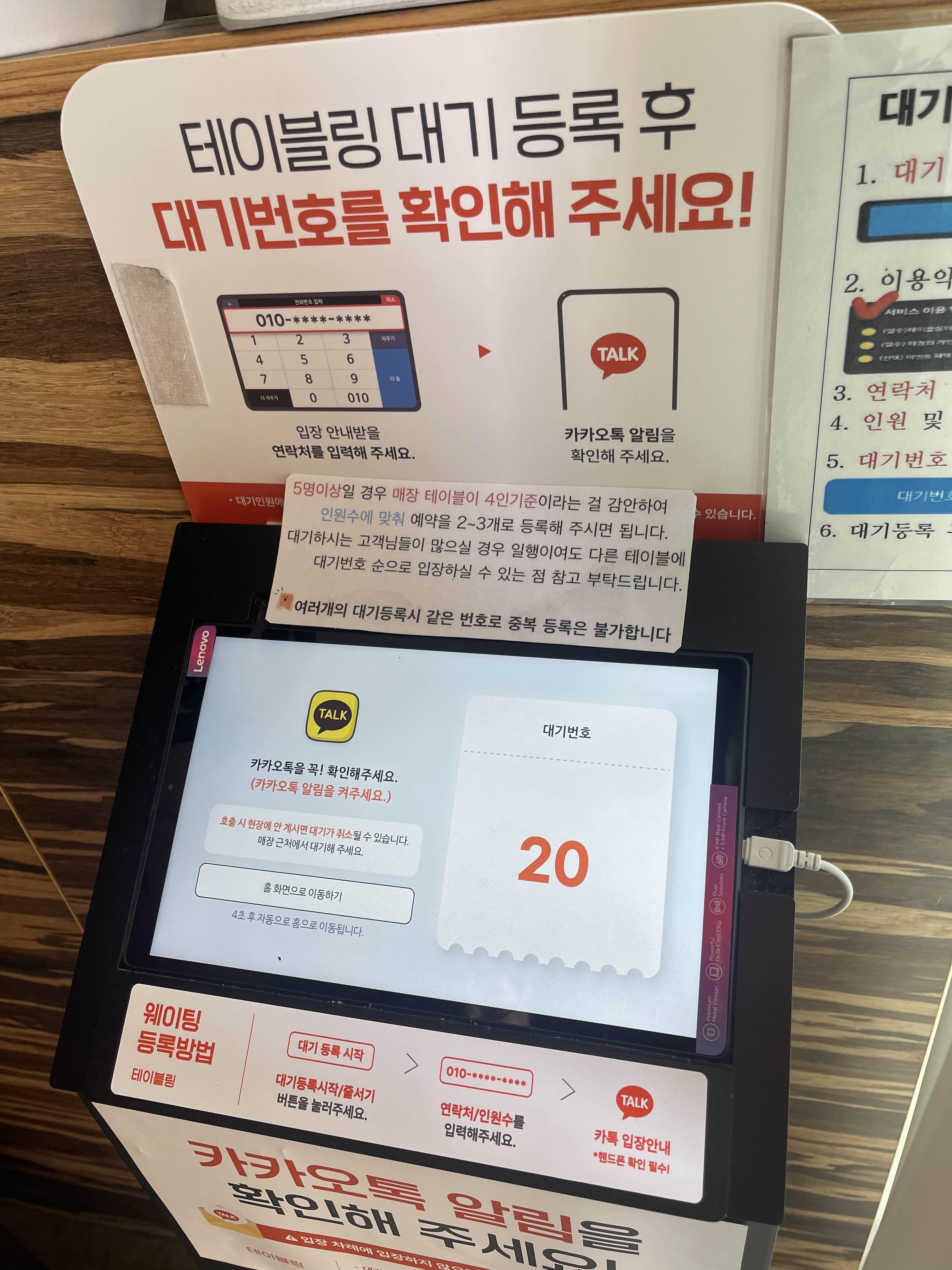 테이블링 원격줄서기를 한 경우 도착해서 대기확정코드를 입력해야해요.