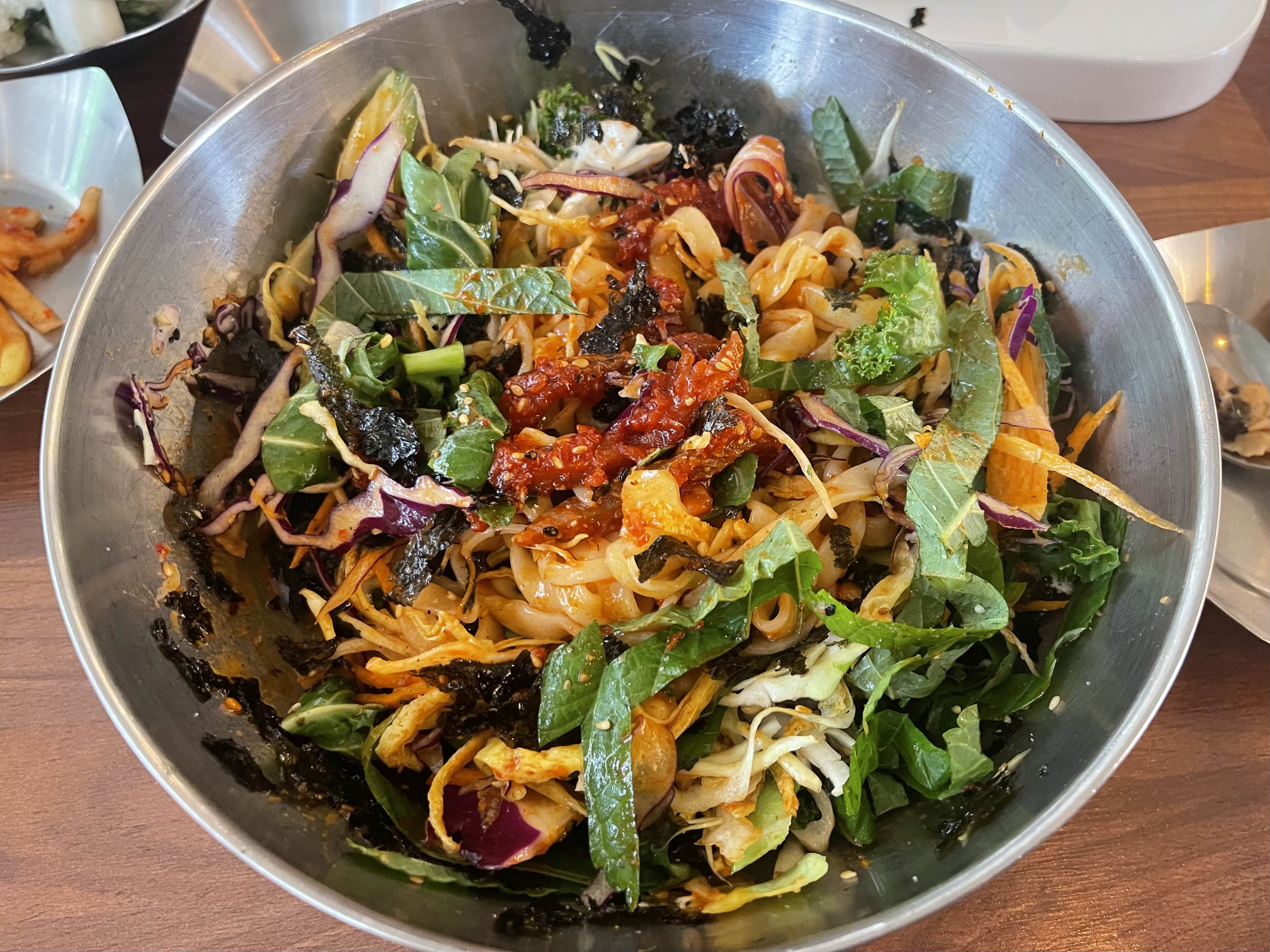 쫠깃한 면발 신선한 야채 상큼새콤한 소스가 맛좋은 비빔칼국수 후회없어요(?)