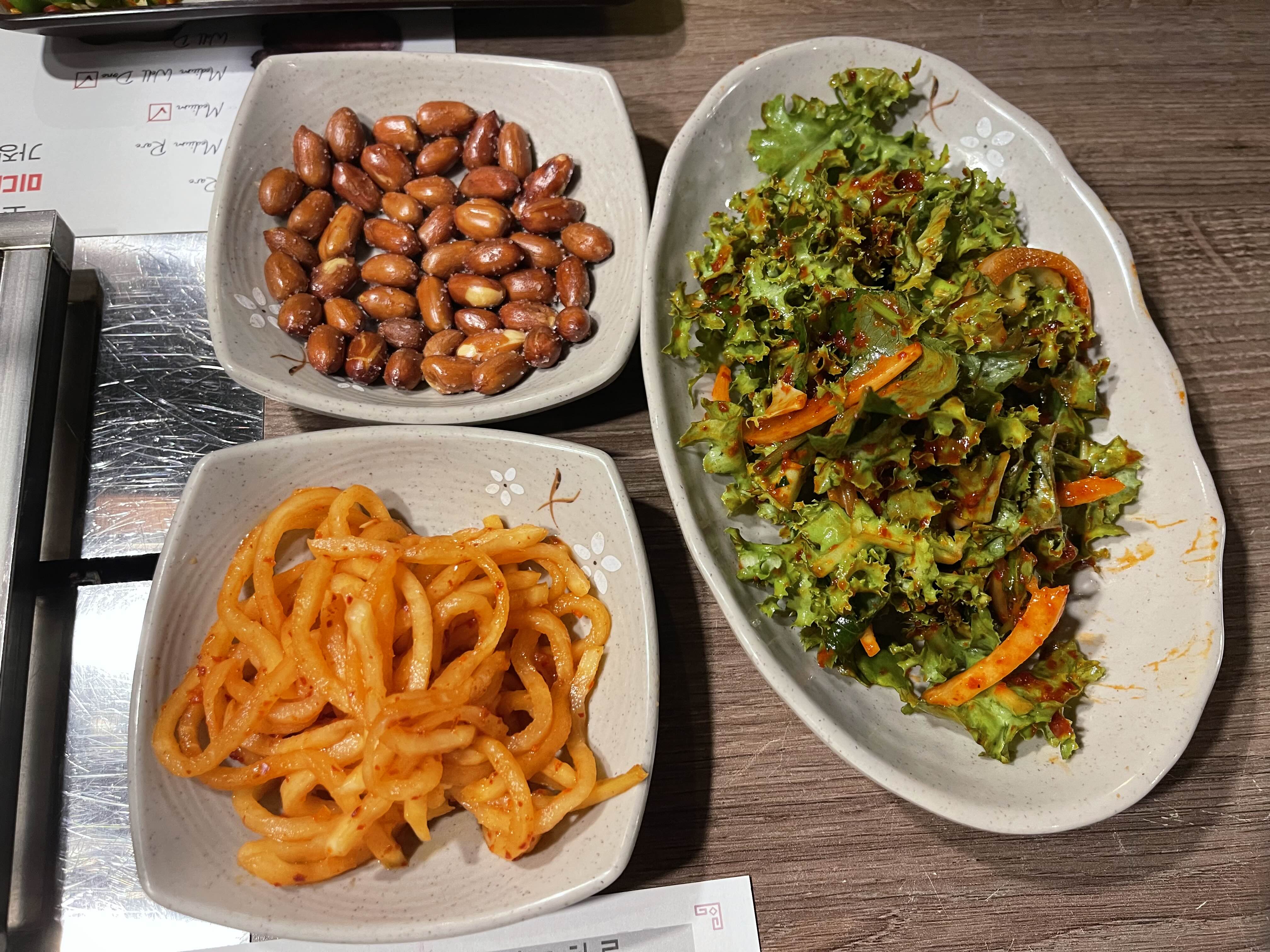 회식장소 옆테이블로 안내 해 주길래 너모 시끄럽다고 옮겨달라구해서 자리를 옮겼어요.