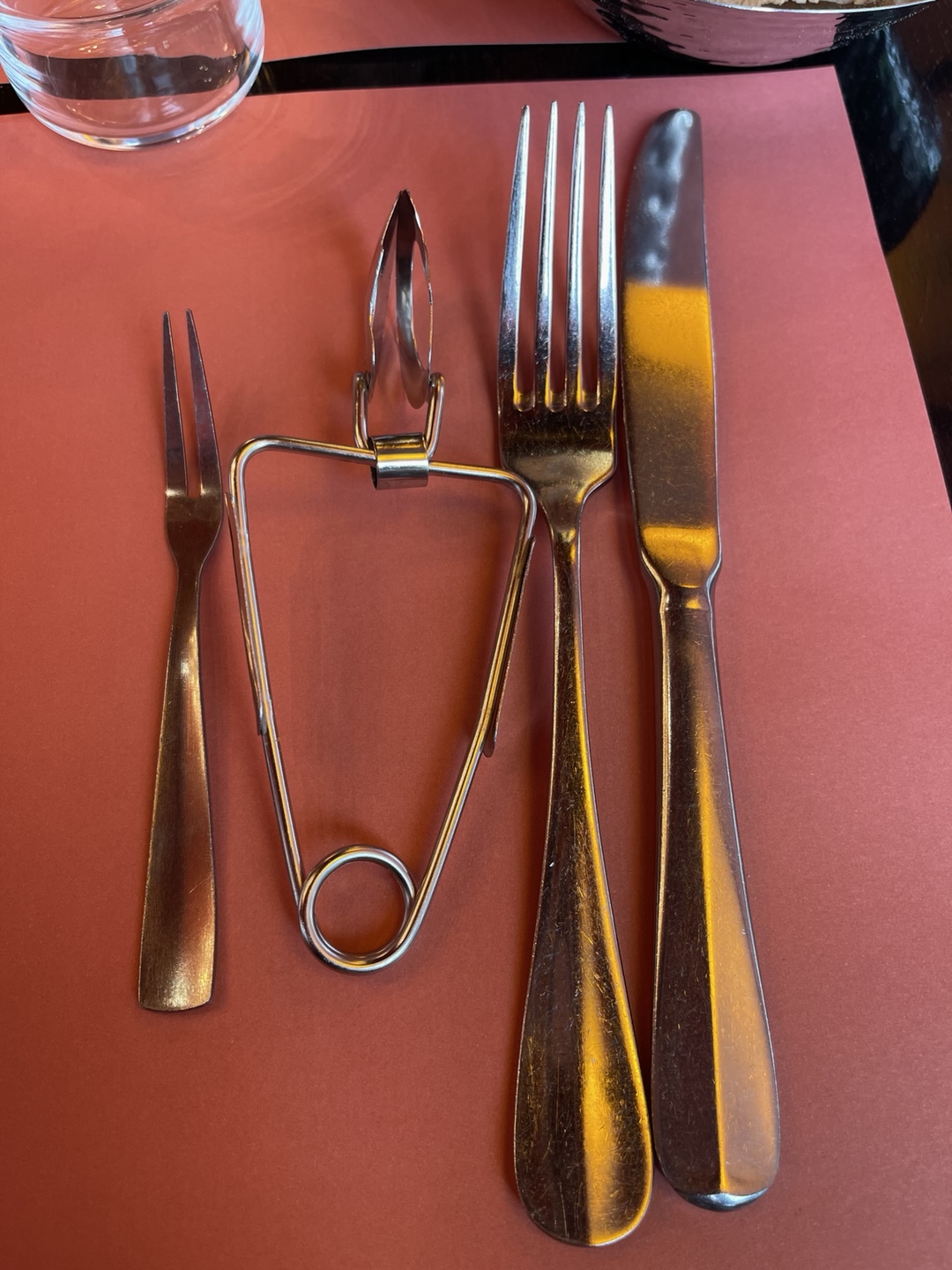 가운데 보이는 요상한 집게로 달팡이를 잘 잡고 왼쪽 얇고 기다란 포크로 콱 찍어서 잘 뽑아먹어보아요.