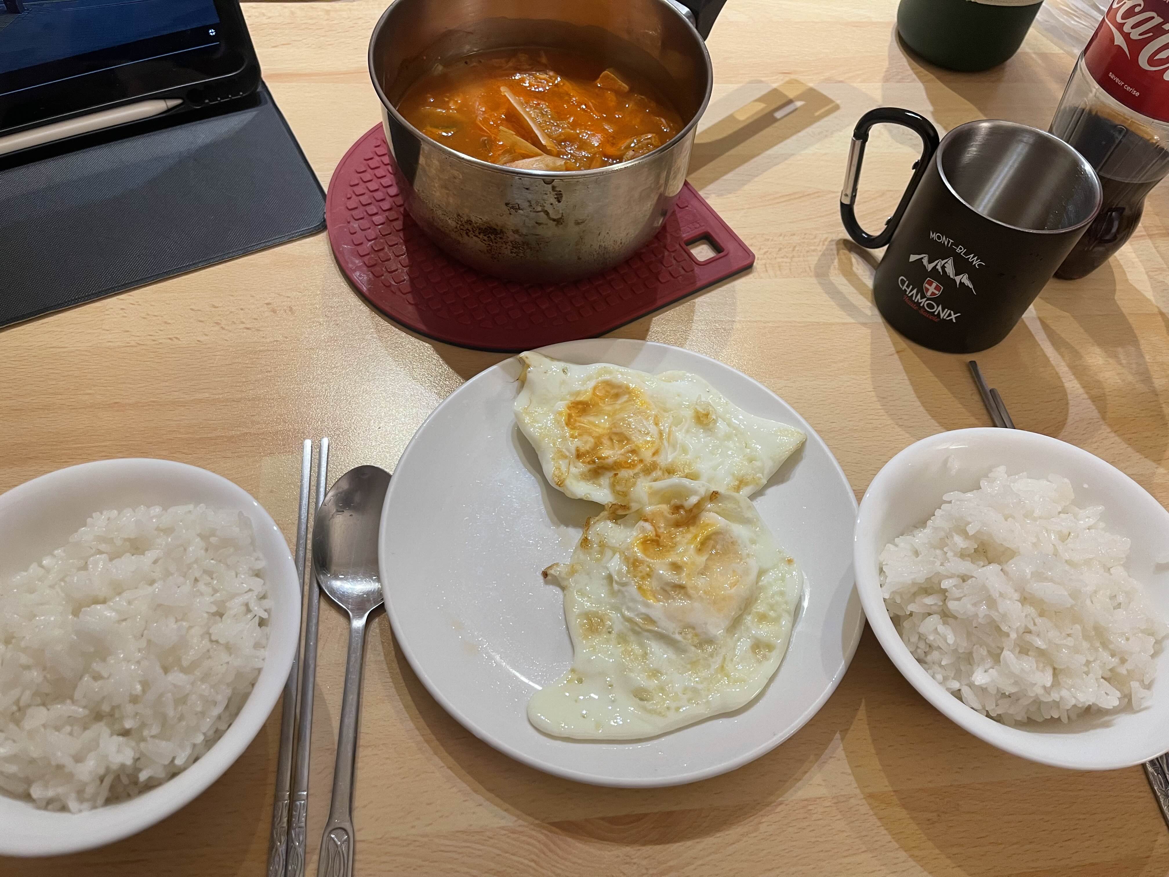 전날 봐둔 한인슈퍼에서 김치찌개와 계란을 사왔어요.