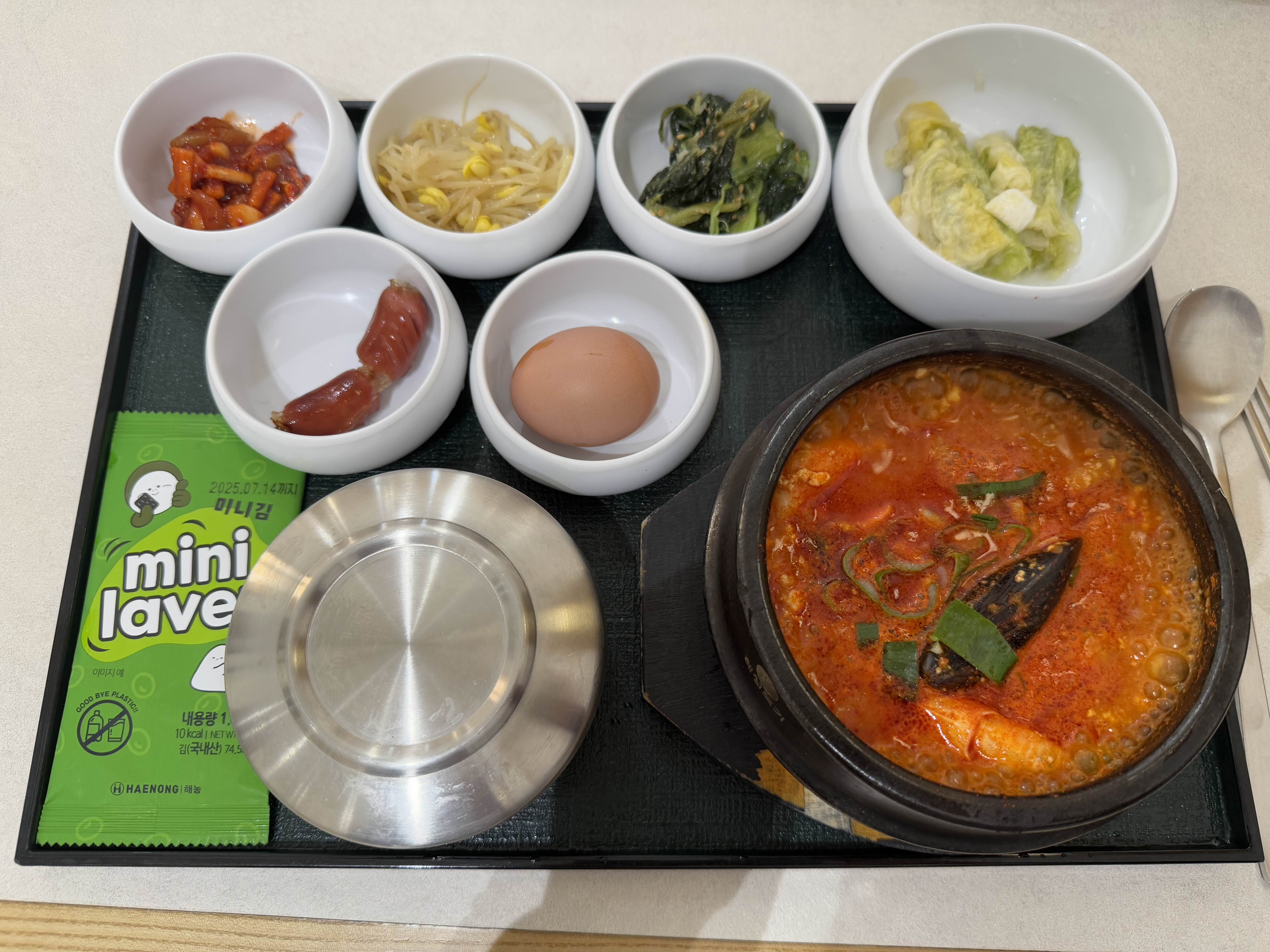 반찬은 해물순두부와 동일하지만, 날계란은 안나오네요.