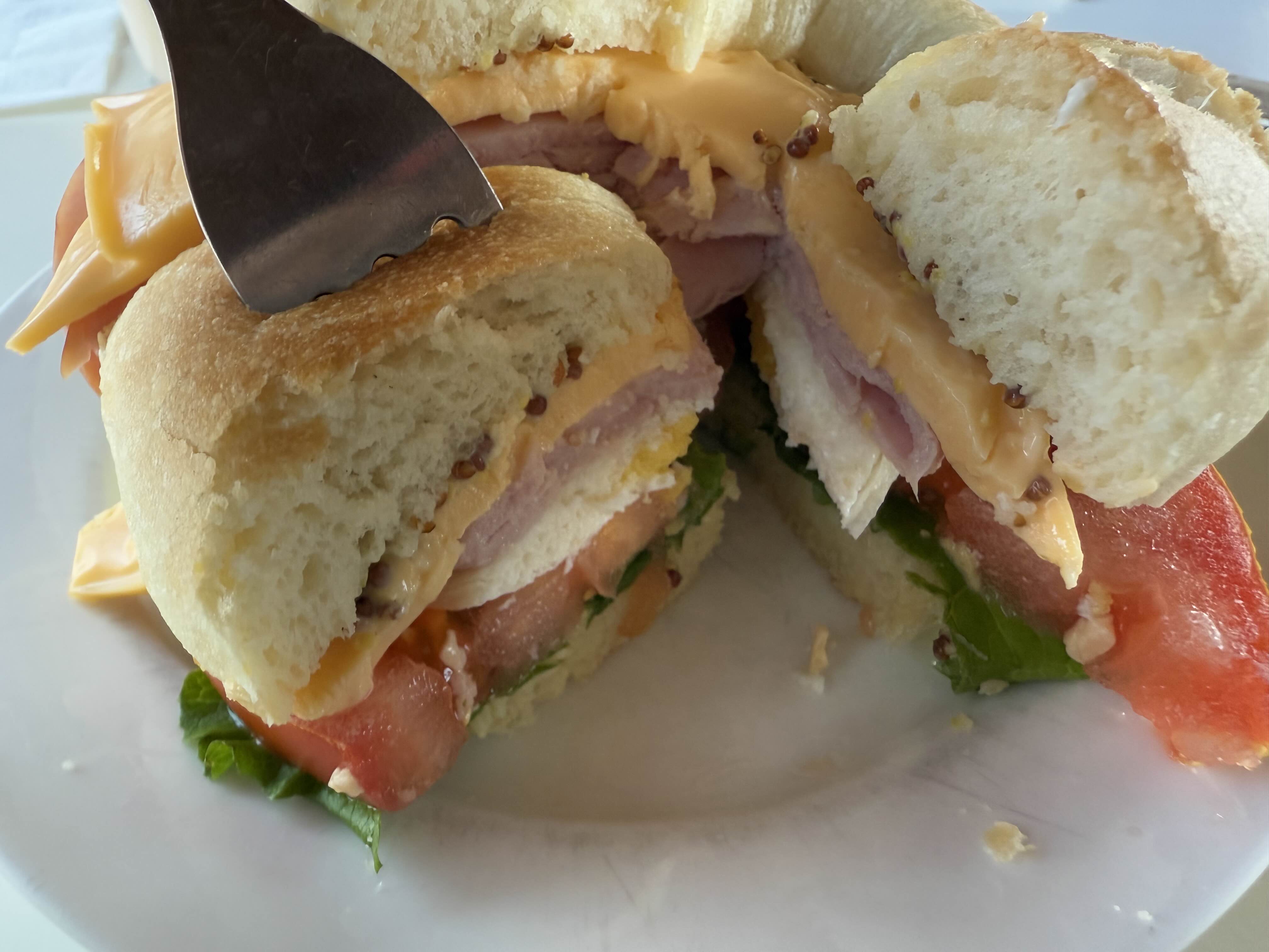 샌드위치 베이글은 소식가 광면이가 식사 대용으로 하나를 다 해치우기 버거웠을 정도로 양이 많았어요.