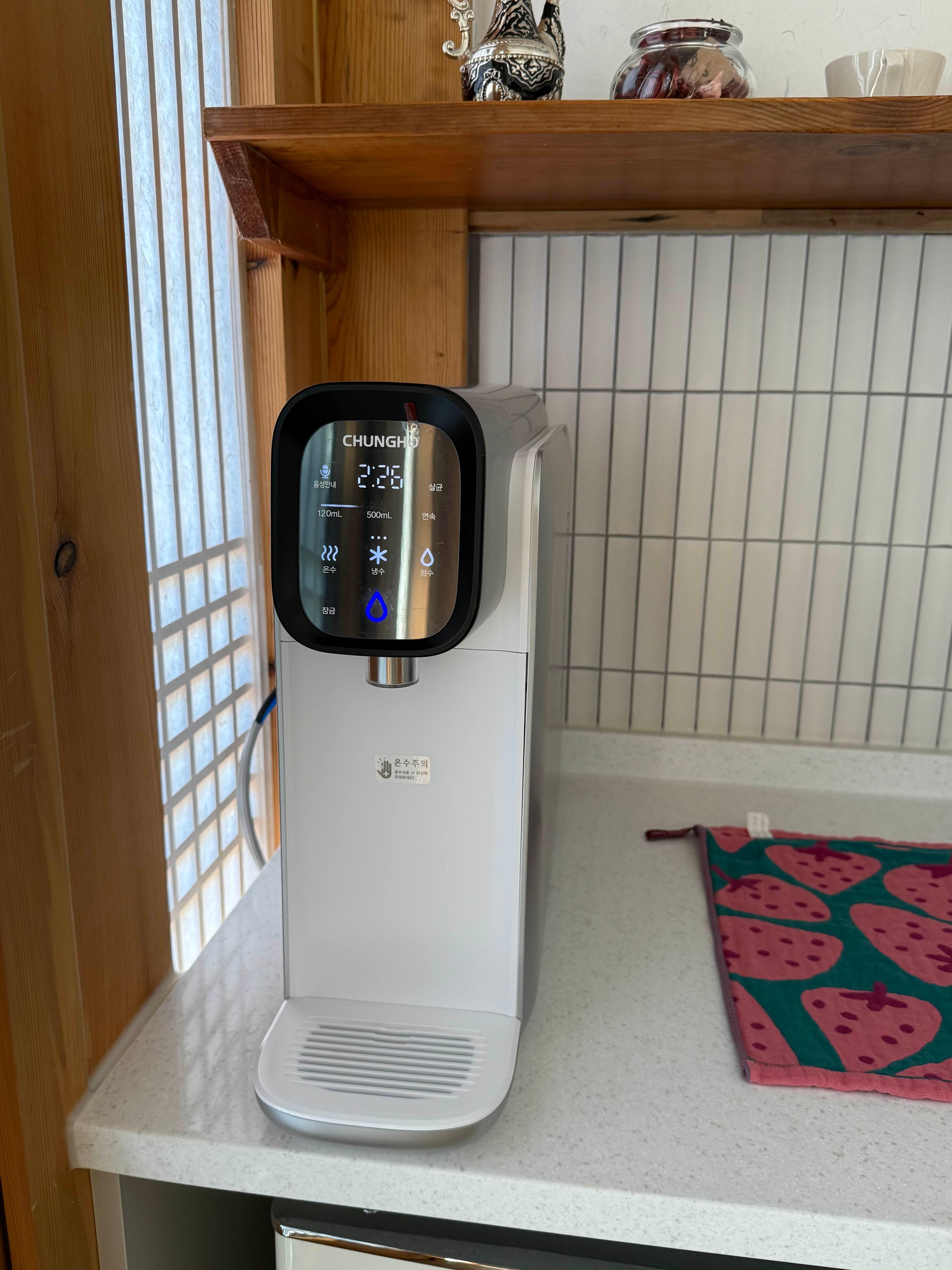 입구에는 요로코롬 정수기가 있어요.
