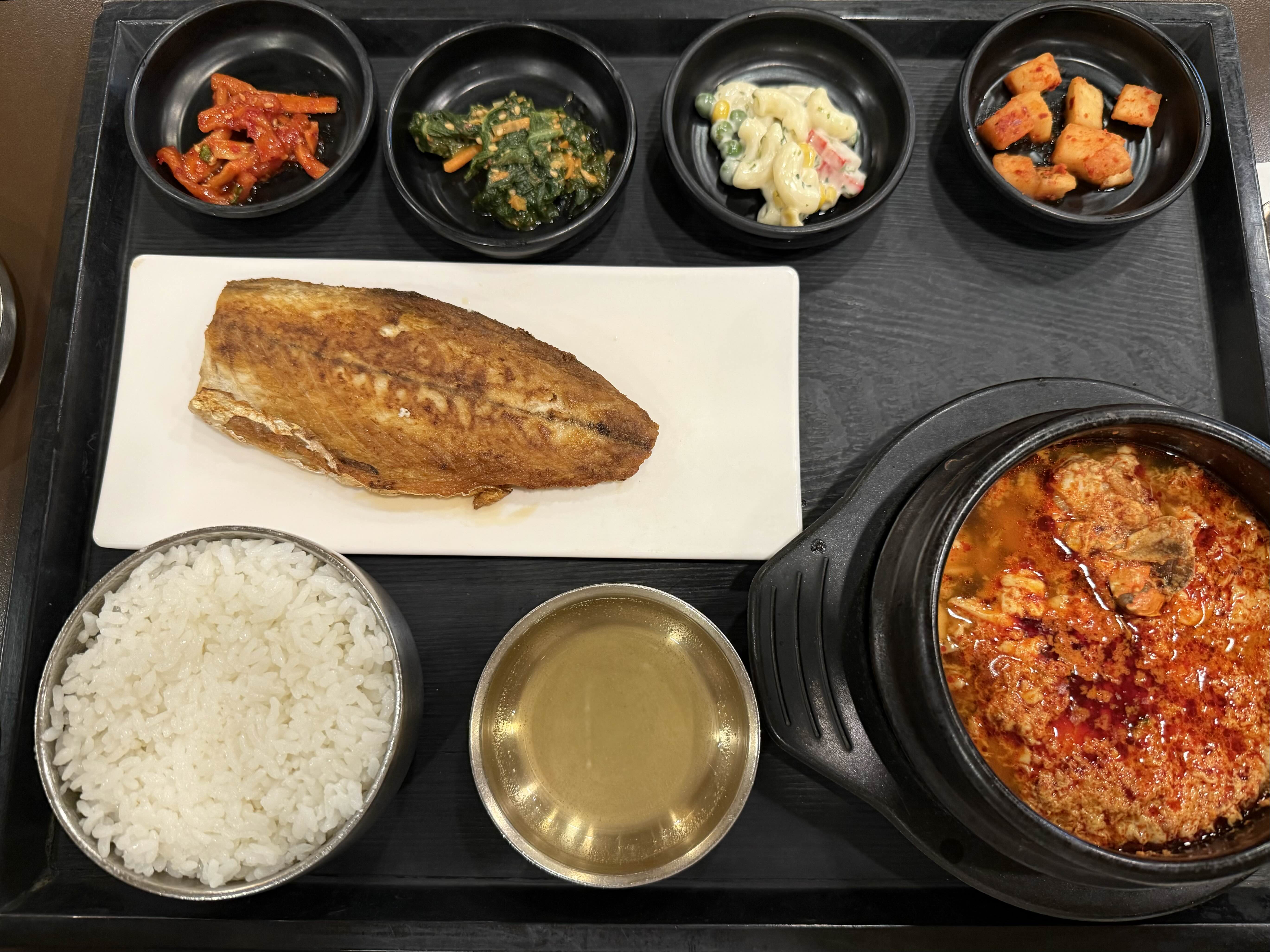 순두부찌개 + 고등어구이예요.