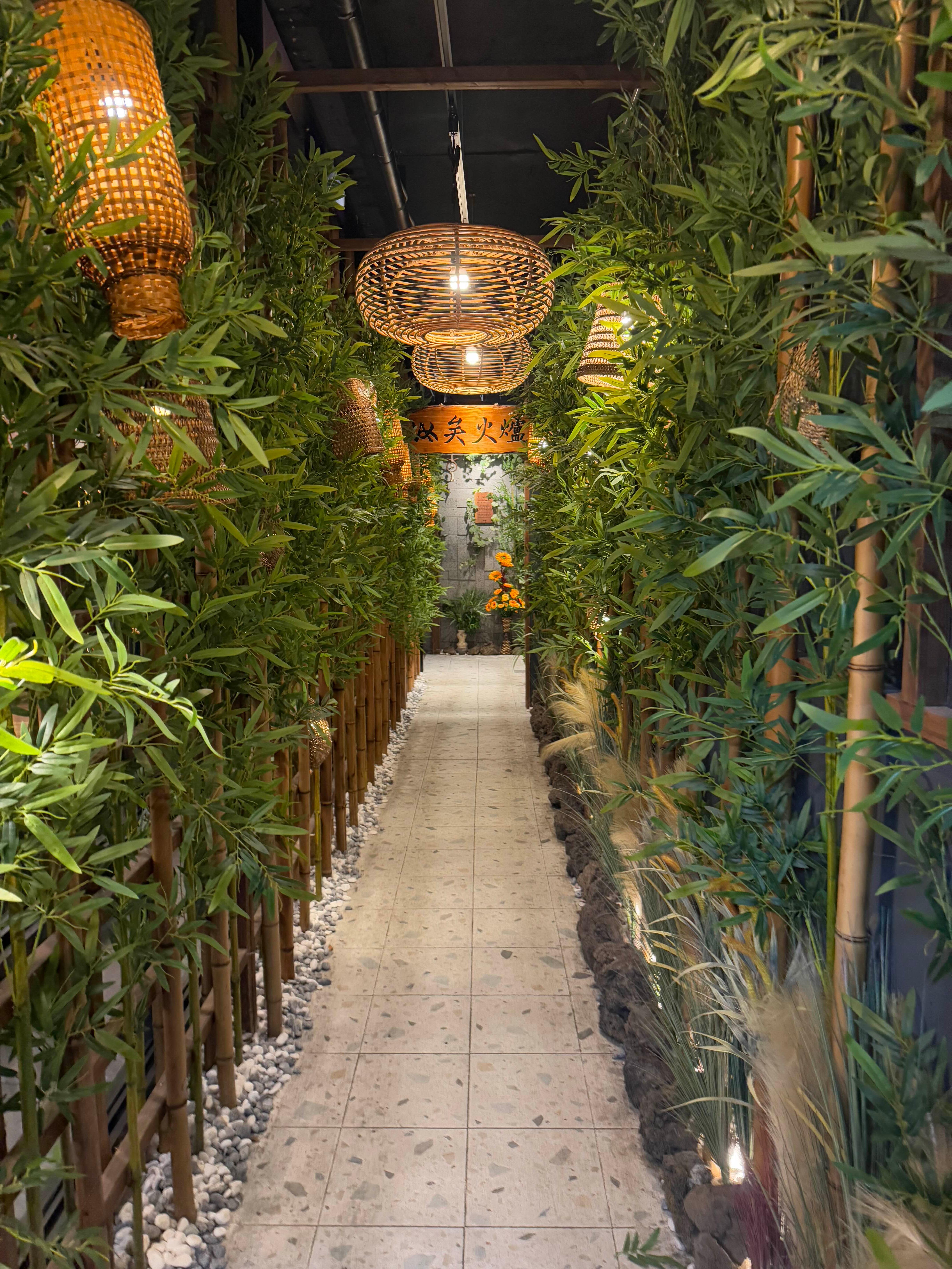 가게 안으로 들어가는 길이 요로코롬 대나무 컨셉으로 되어있어요.