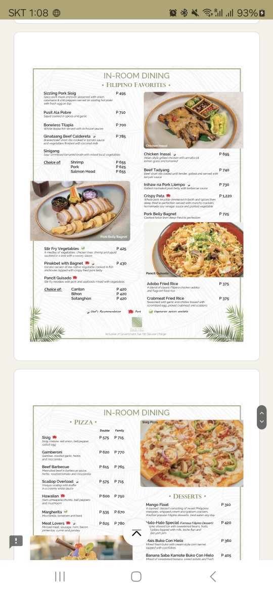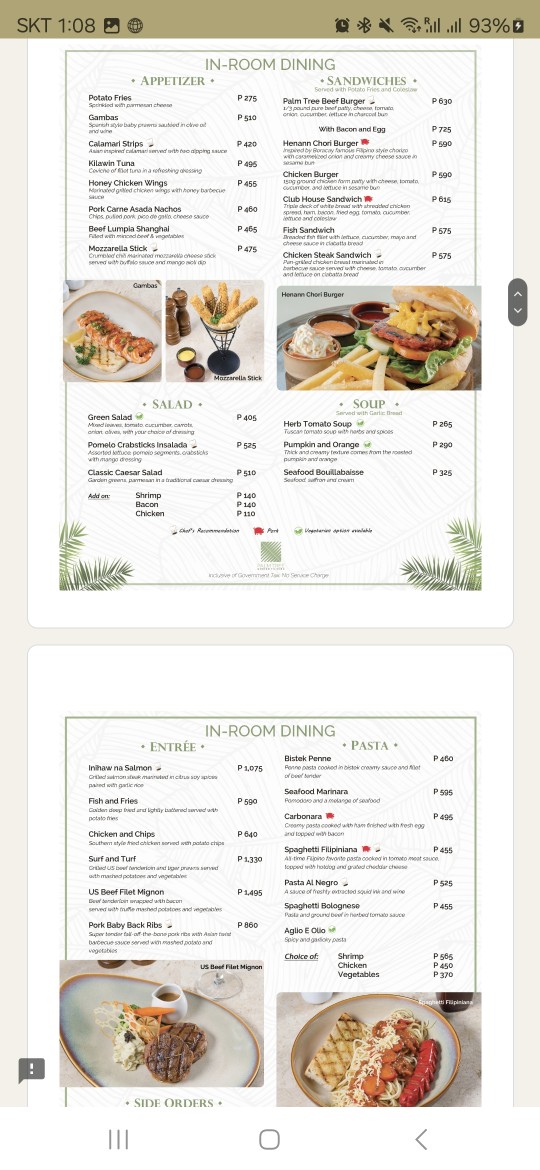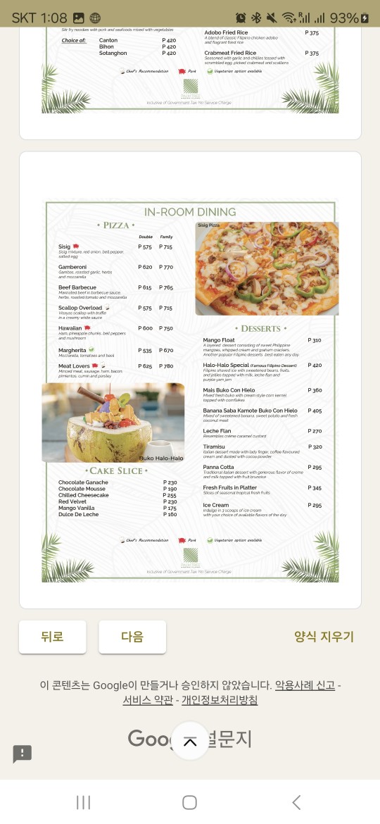 마지막 날 밤 광면이는 룸서비스도 즐겨봤는데요,