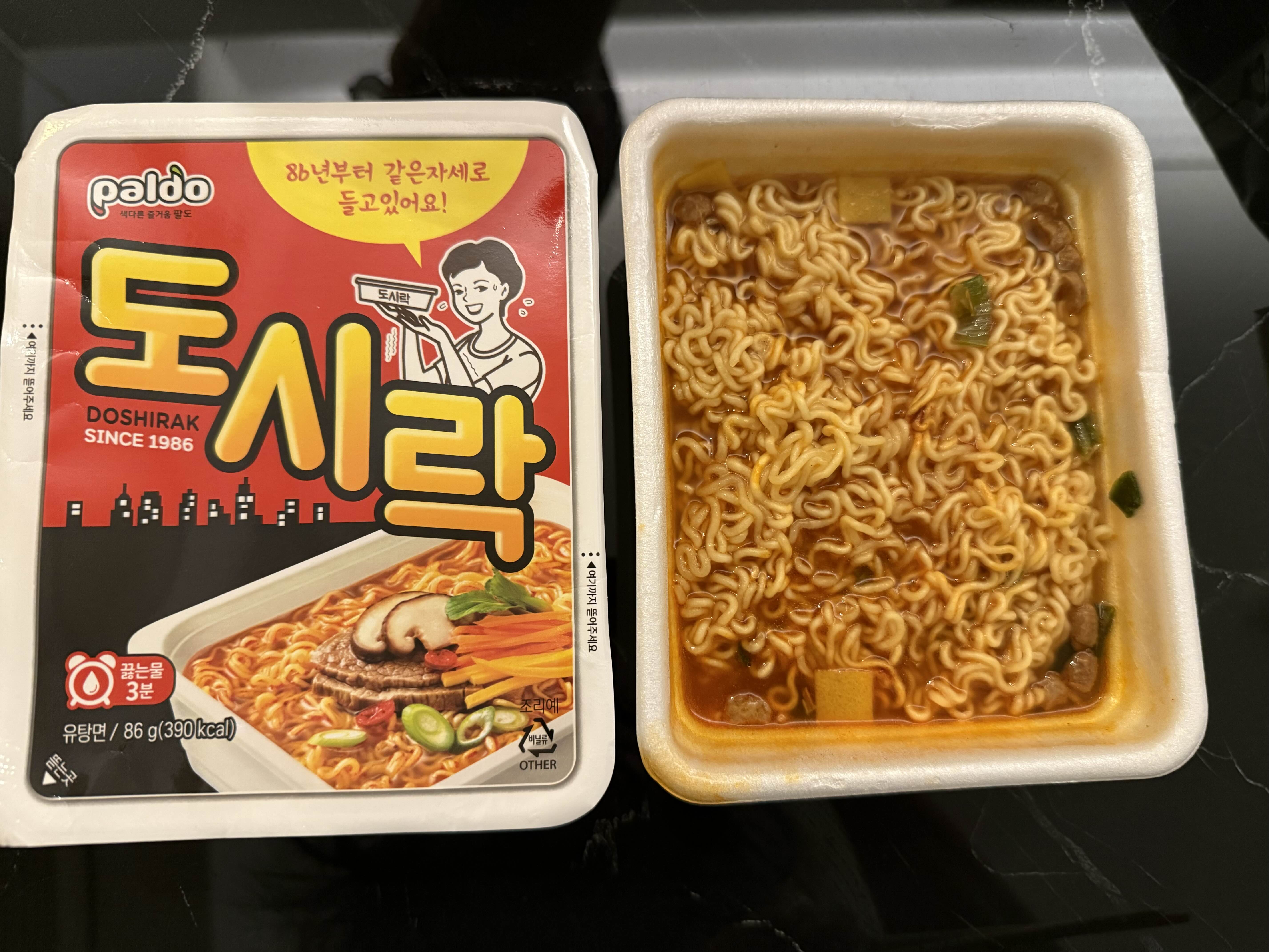 한국에서부터 바리바리 싸온 도시락 컵라면을 먹기로 했어요.