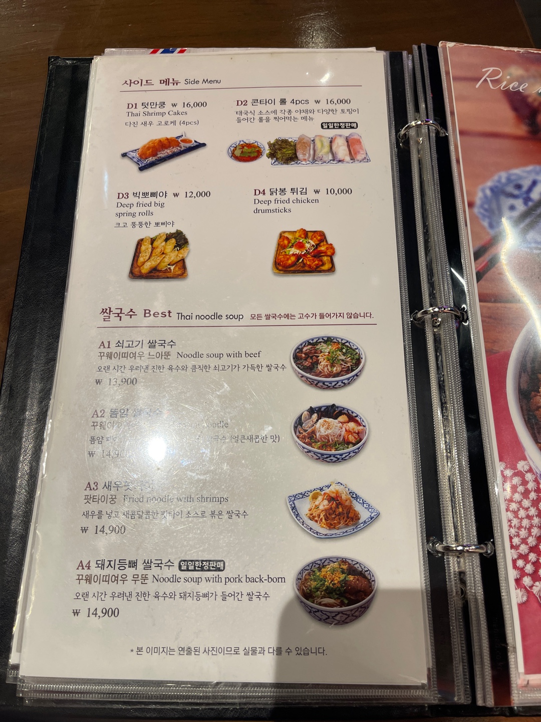 광면이는 해물쌀국수와 돼지등뼈쌀국수를 주문했어요.