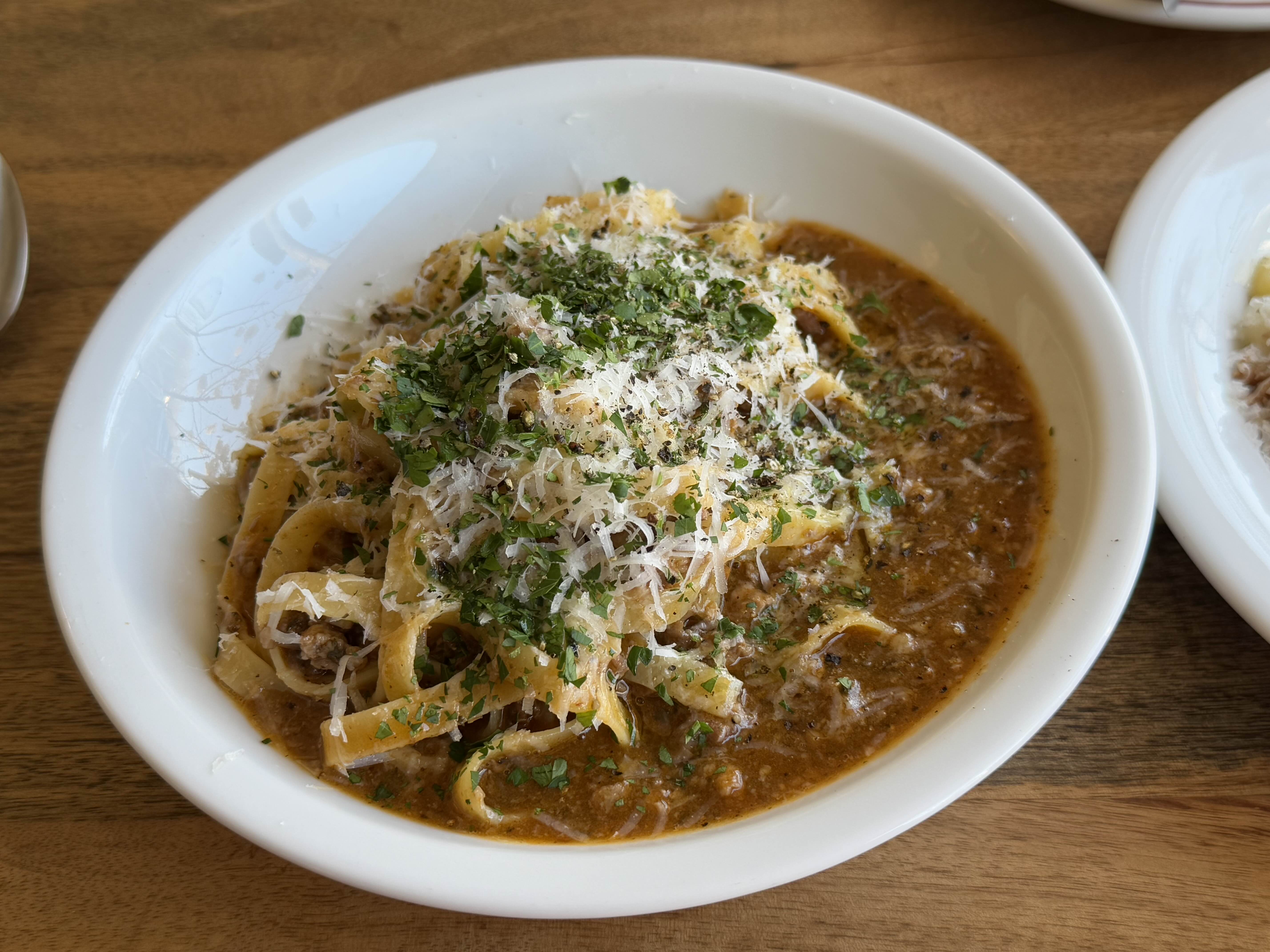 치폴레 라구 파스타, 프랑스식 대파요리, 브리오슈 프렌치 토스트를 주문했어요.