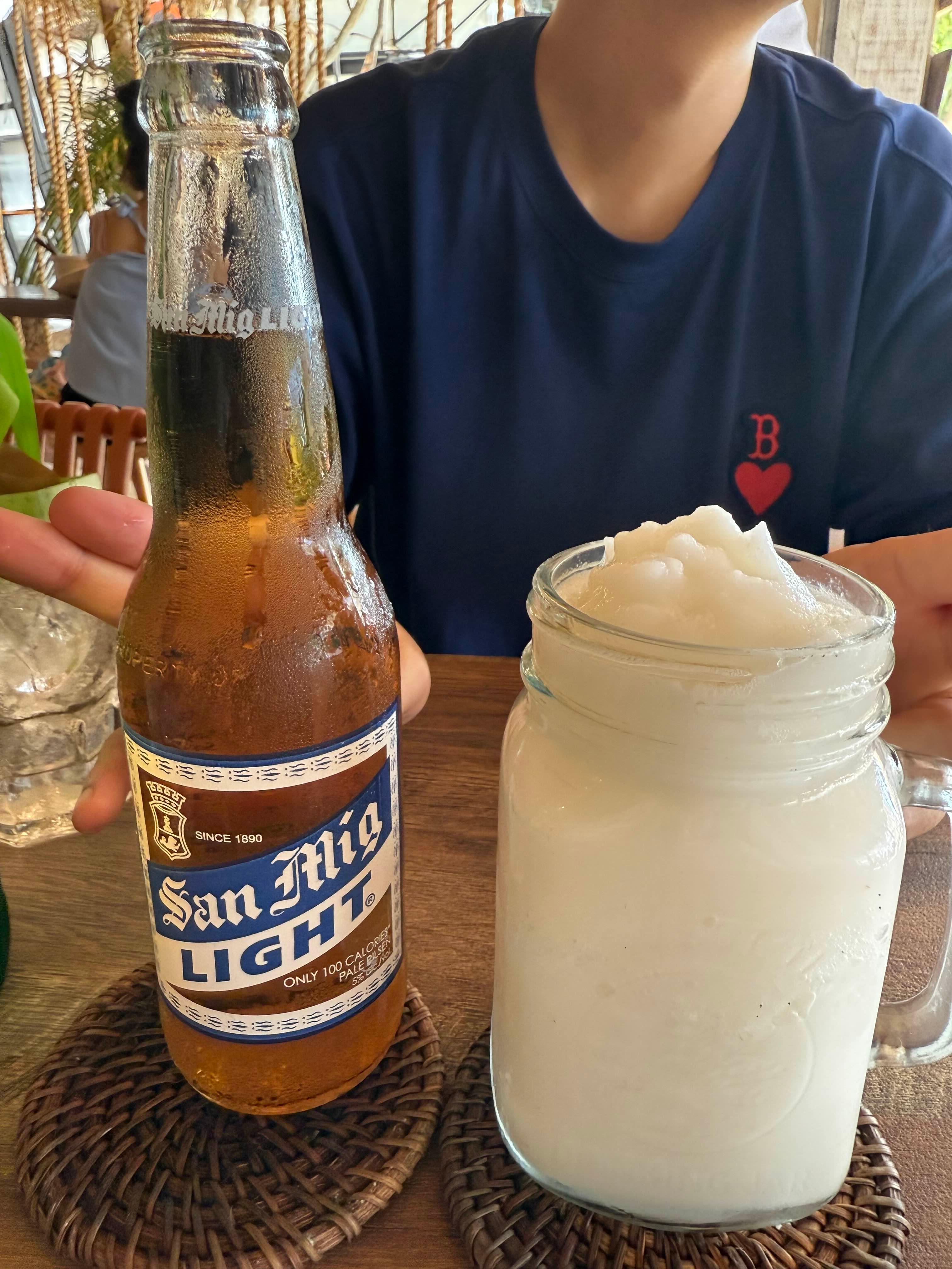 광면이는 재머스 클래깃 치즈버거, 볼로네즈 파스타, 산미구엘라이트, 코코넛쉐이크를 주문했어요.